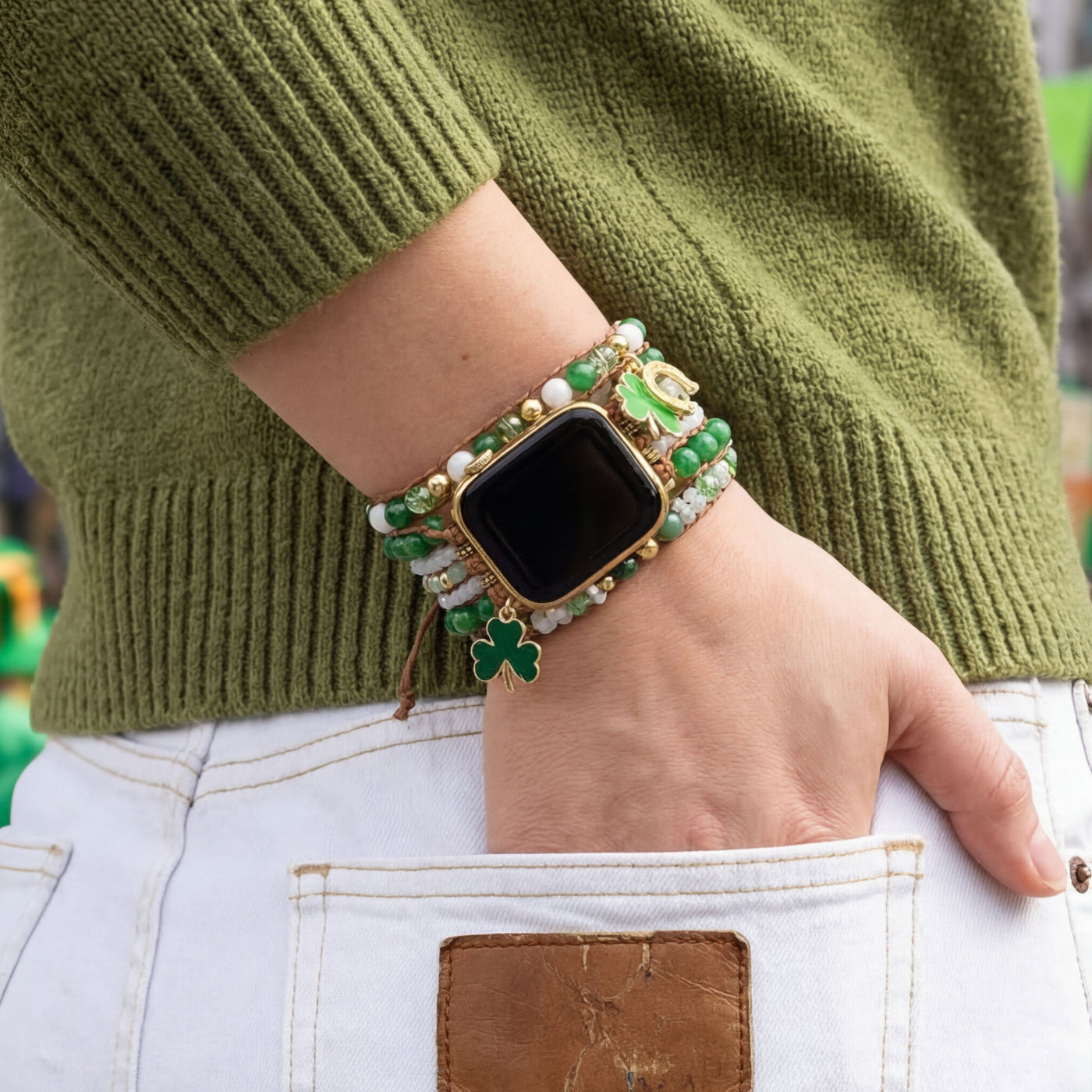Handcrafted with natural stones, this unique strap adds a meaningful touch to your everyday style while bringing a hint of good fortune wherever you go. 🍀✨