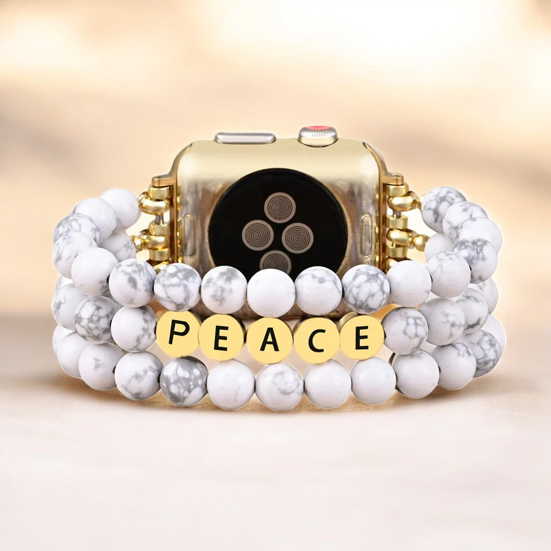 Verbessern Sie Ihre Apple Watch mit dem Howlite Peace Inspiration Apple Watch Armband, eine perfekte Kombination aus Komfort und Stil. Gefertigt aus echtem Howlith, sorgt dieses dehnbare Armband nicht nur für eine enge Passform, sondern strahlt auch eine ruhige Eleganz aus.