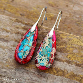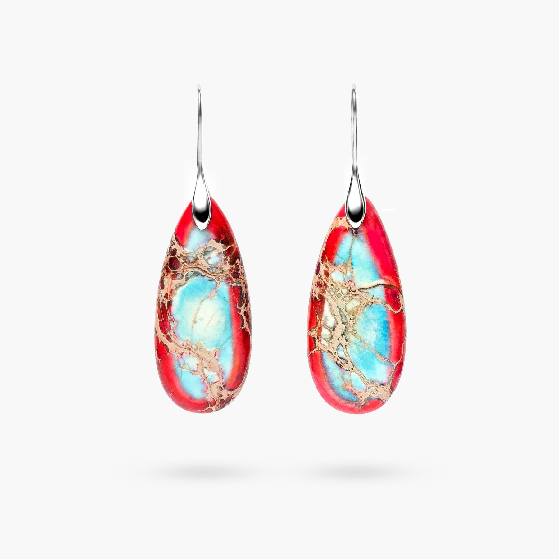 Die Imperial Jasper Tropfen-Ohrringe strahlen Kühnheit und Mut aus und befähigen Sie, Herausforderungen mit Anmut und Selbstvertrauen zu meistern. Lassen Sie die Kraft des Imperial Jasper Ihnen helfen, Unsicherheiten loszulassen und Ihr wahres, reichhaltiges Selbst zu umarmen.