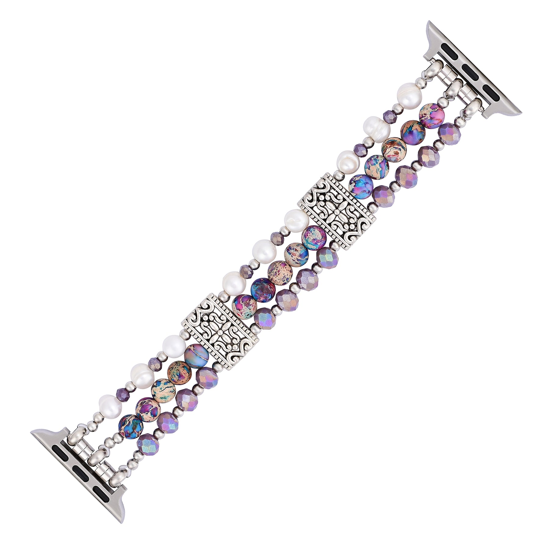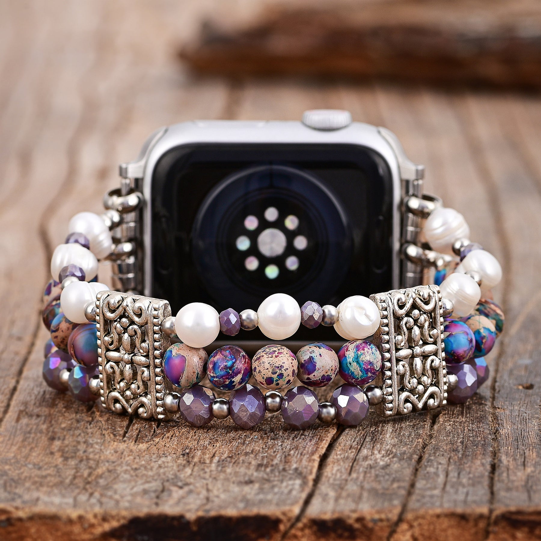 Verwandeln Sie Ihre Apple Watch in ein faszinierendes Accessoire mit dem Artisanal Jasper Oasis Stretch Apple Watch Armband. Dieses exquisite Armband verbindet die erdende Schönheit von Jaspis mit der schimmernden Eleganz von Kristall und dem warmen, strahlenden Glanz von Kupfer.