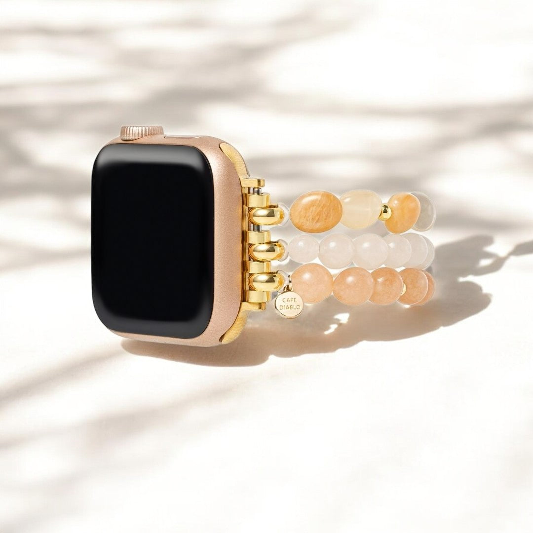 Wir stellen vor: Unser Sunstone Radiant Apple Watch Armband, ein Leuchtfeuer von Wärme und Eleganz für Ihr Handgelenk. Gefertigt aus echten Sonnensteinperlen, ist jedes Armband mit den feurigen Farbtönen der Sonne durchdrungen und strahlt Wärme und Vitalität aus.