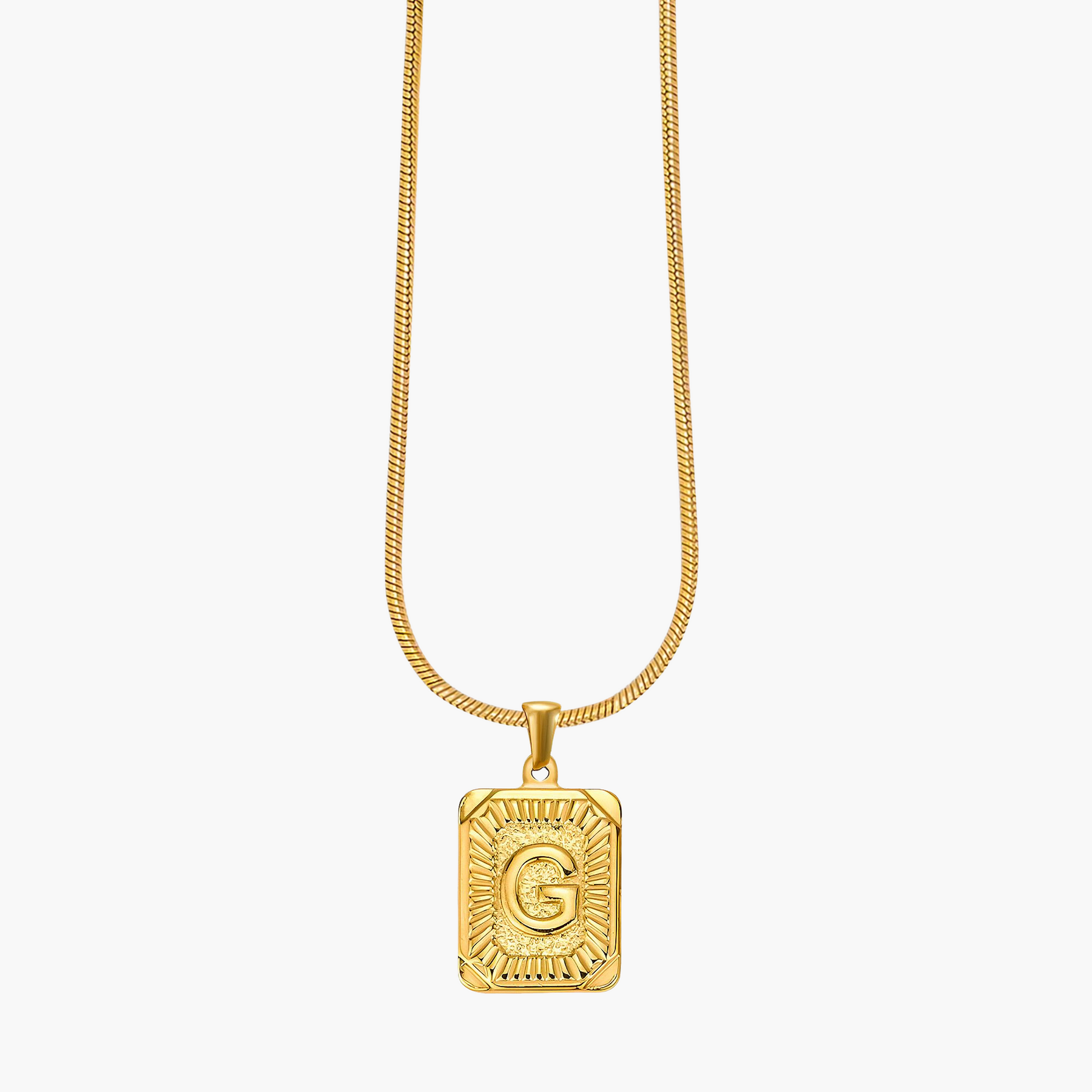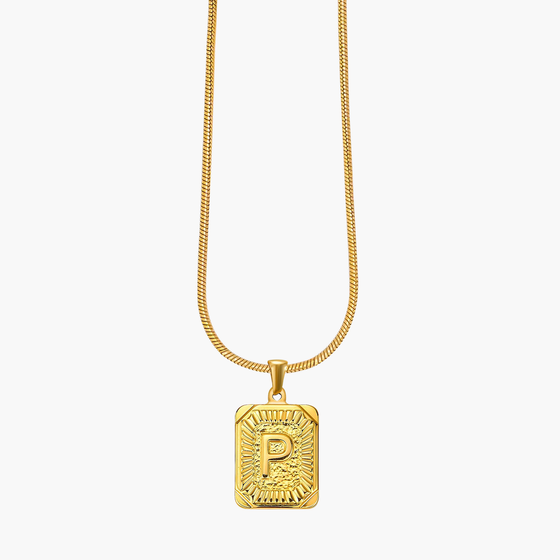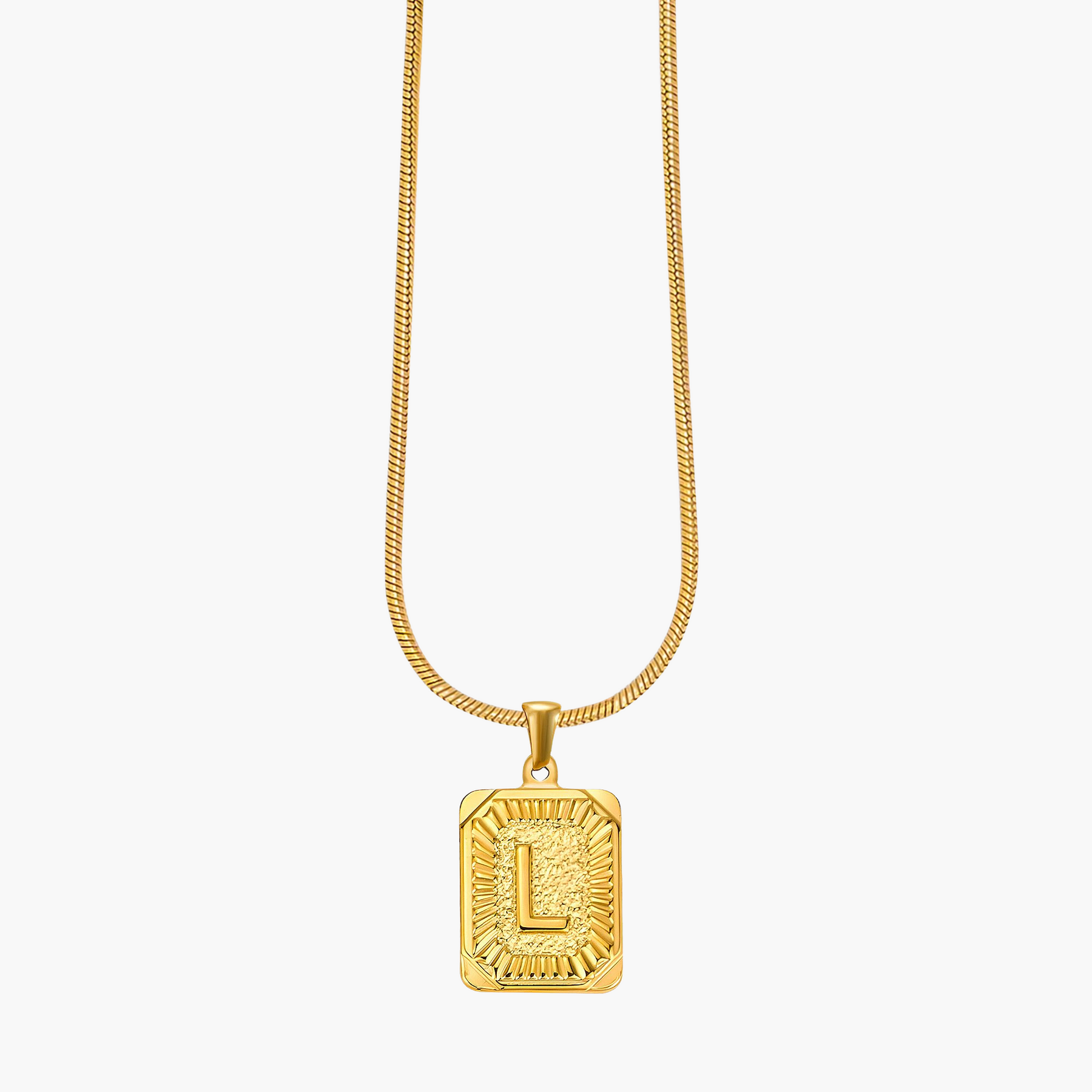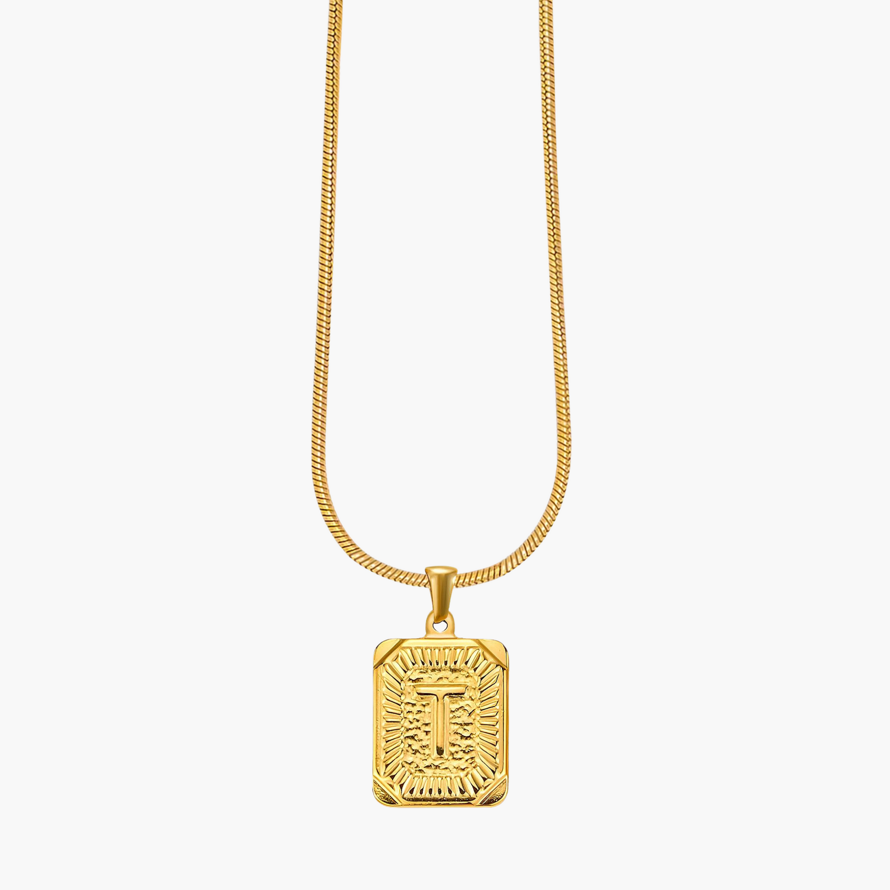 Illuminate your look with the Golden Glow Initial Charm Necklace, a timeless piece designed to add a personal touch to your style. Crafted from radiant gold-tone metal, this elegant pendant features a bold initial framed by intricate sunburst detailing, symbolizing warmth, strength, and individuality.