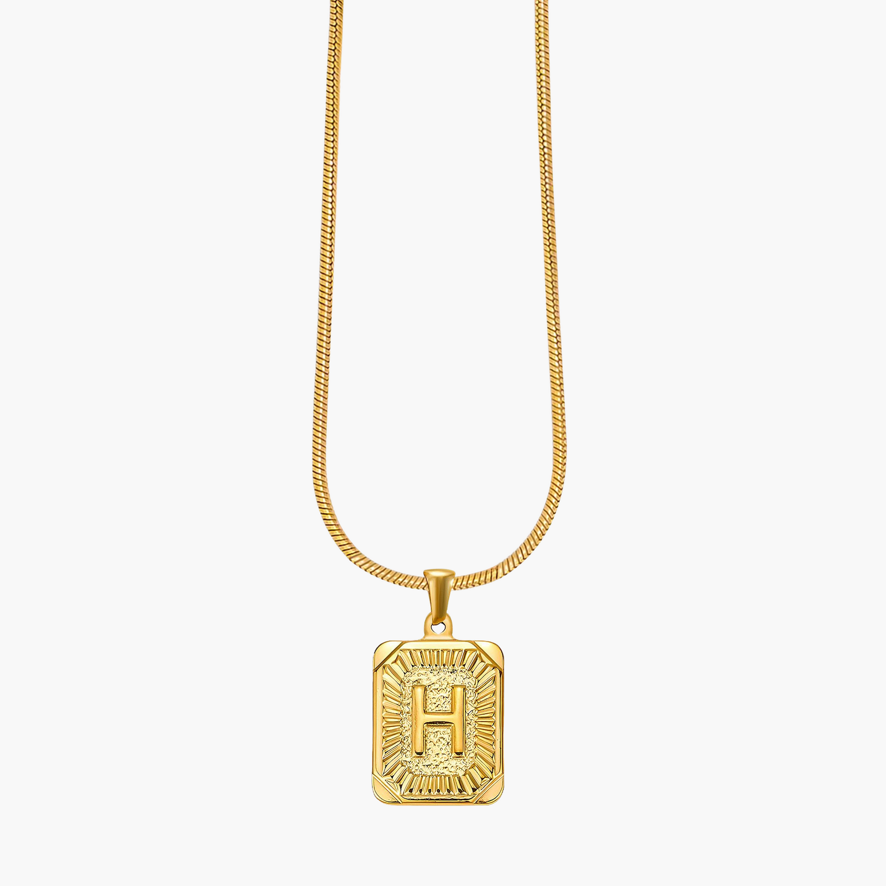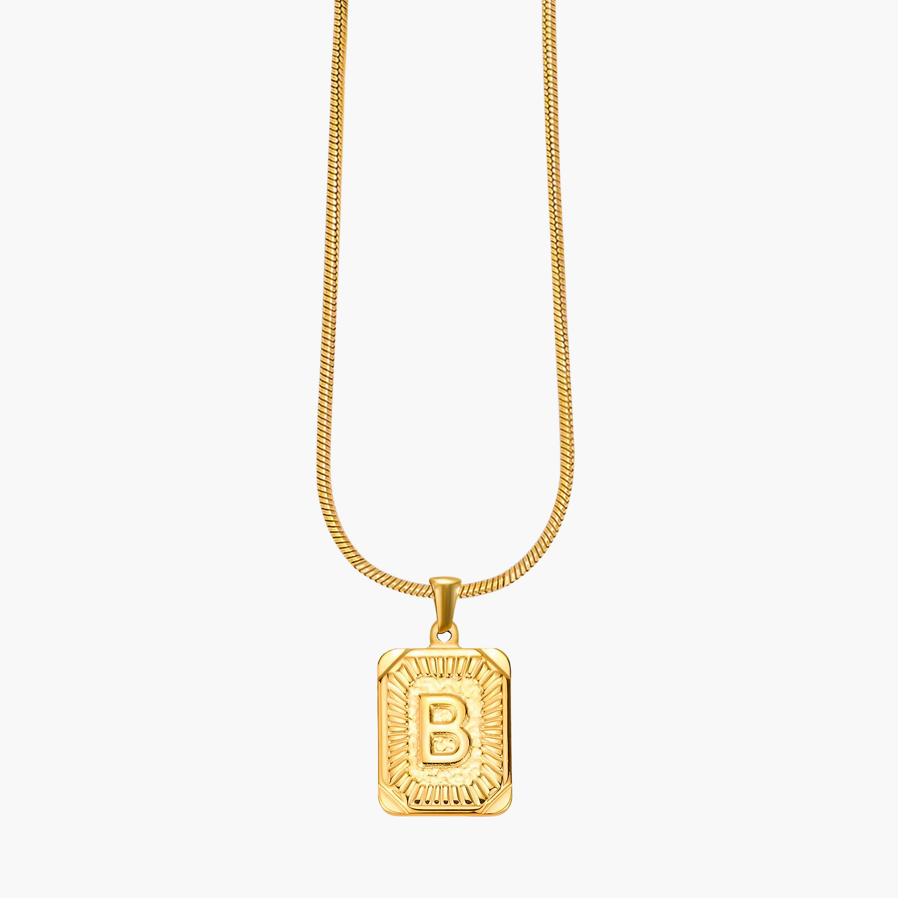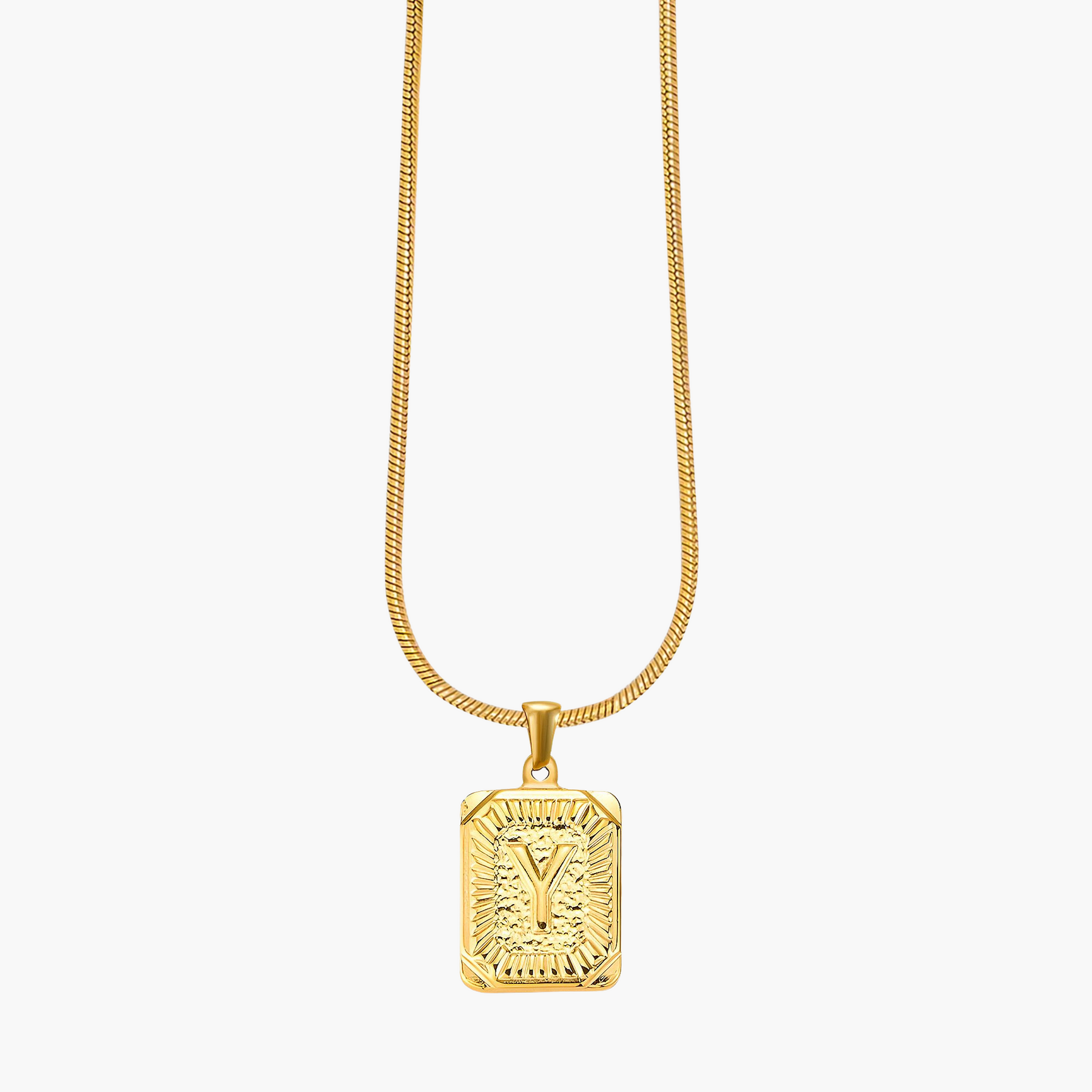 Illuminate your look with the Golden Glow Initial Charm Necklace, a timeless piece designed to add a personal touch to your style. Crafted from radiant gold-tone metal, this elegant pendant features a bold initial framed by intricate sunburst detailing, symbolizing warmth, strength, and individuality.