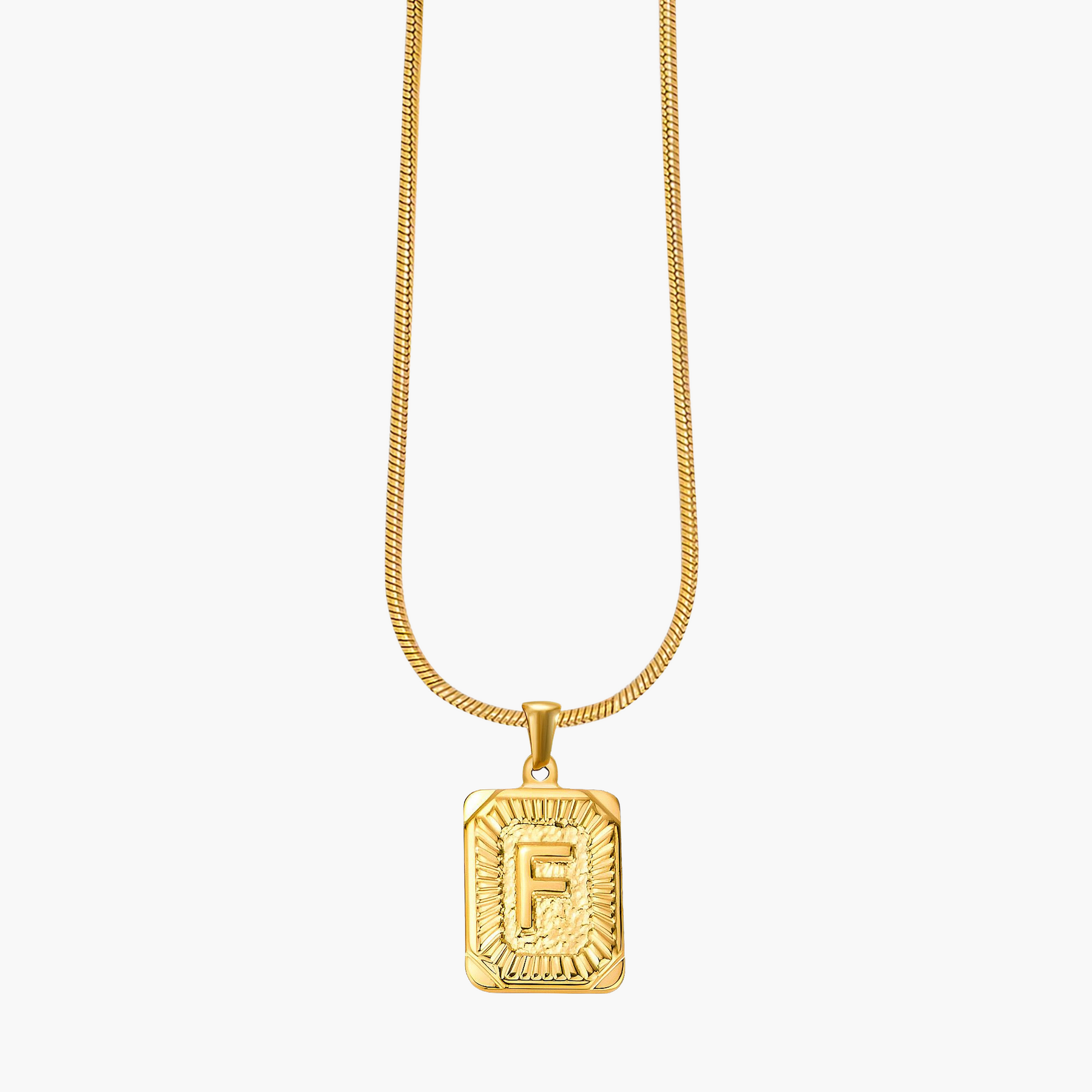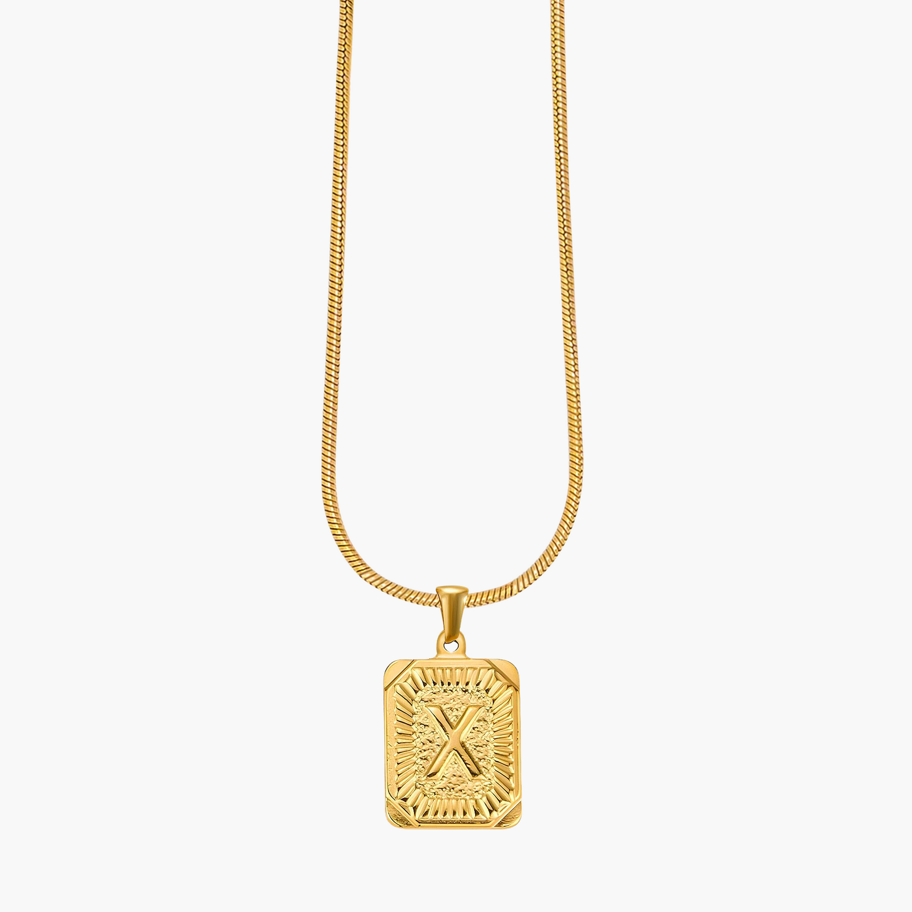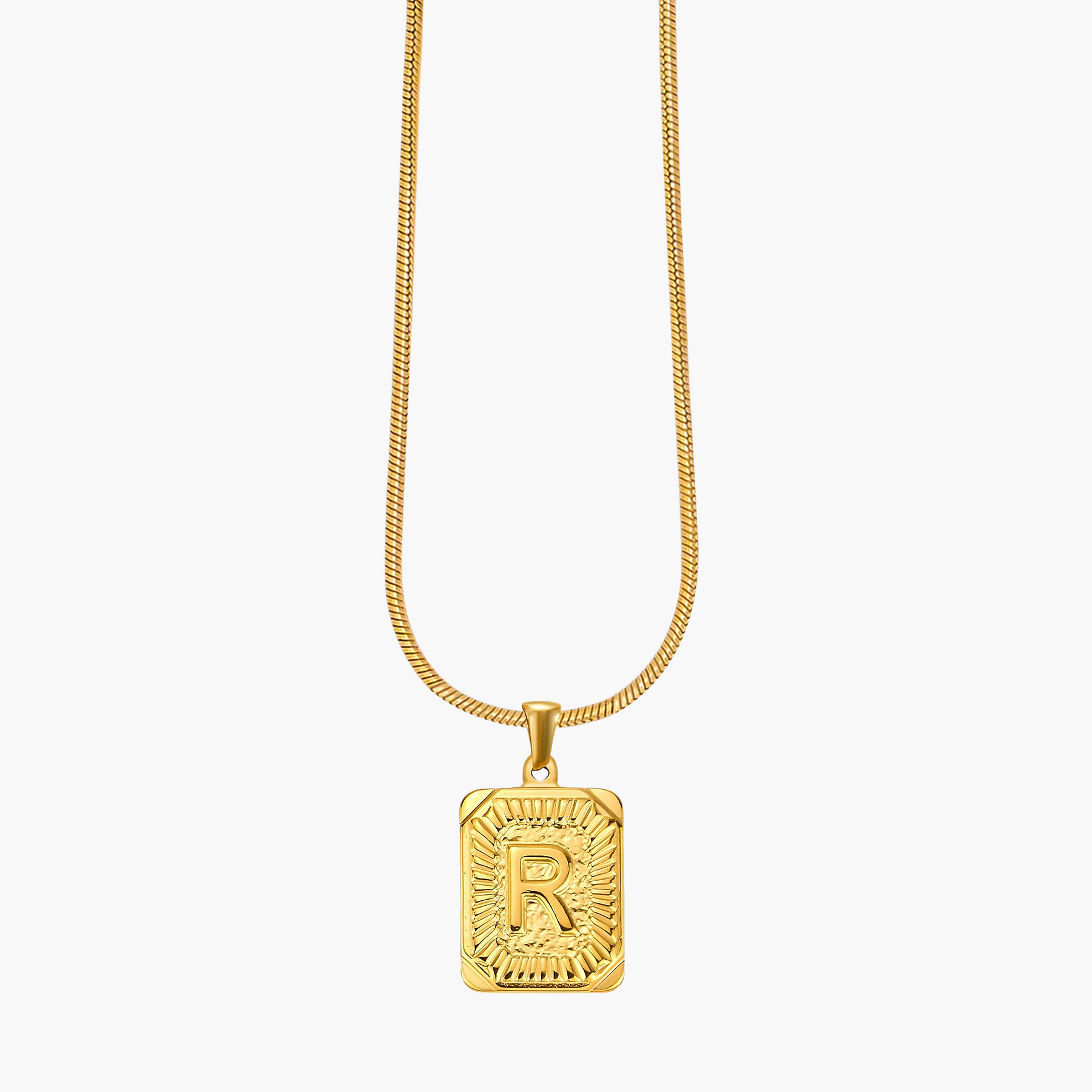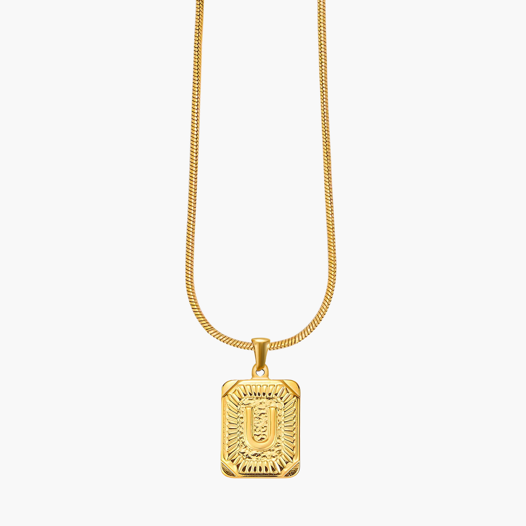 Illuminate your look with the Golden Glow Initial Charm Necklace, a timeless piece designed to add a personal touch to your style. Crafted from radiant gold-tone metal, this elegant pendant features a bold initial framed by intricate sunburst detailing, symbolizing warmth, strength, and individuality.