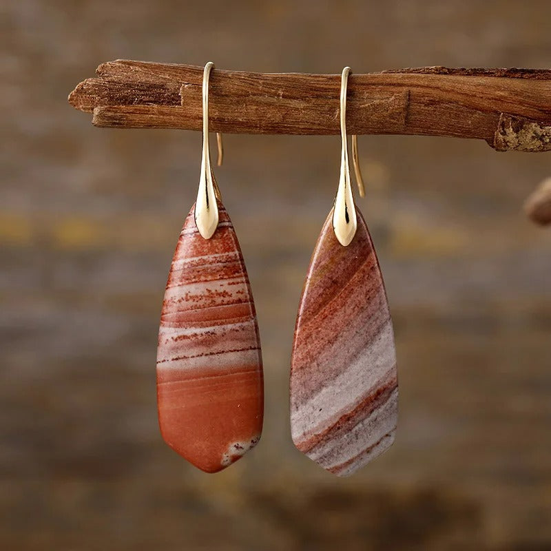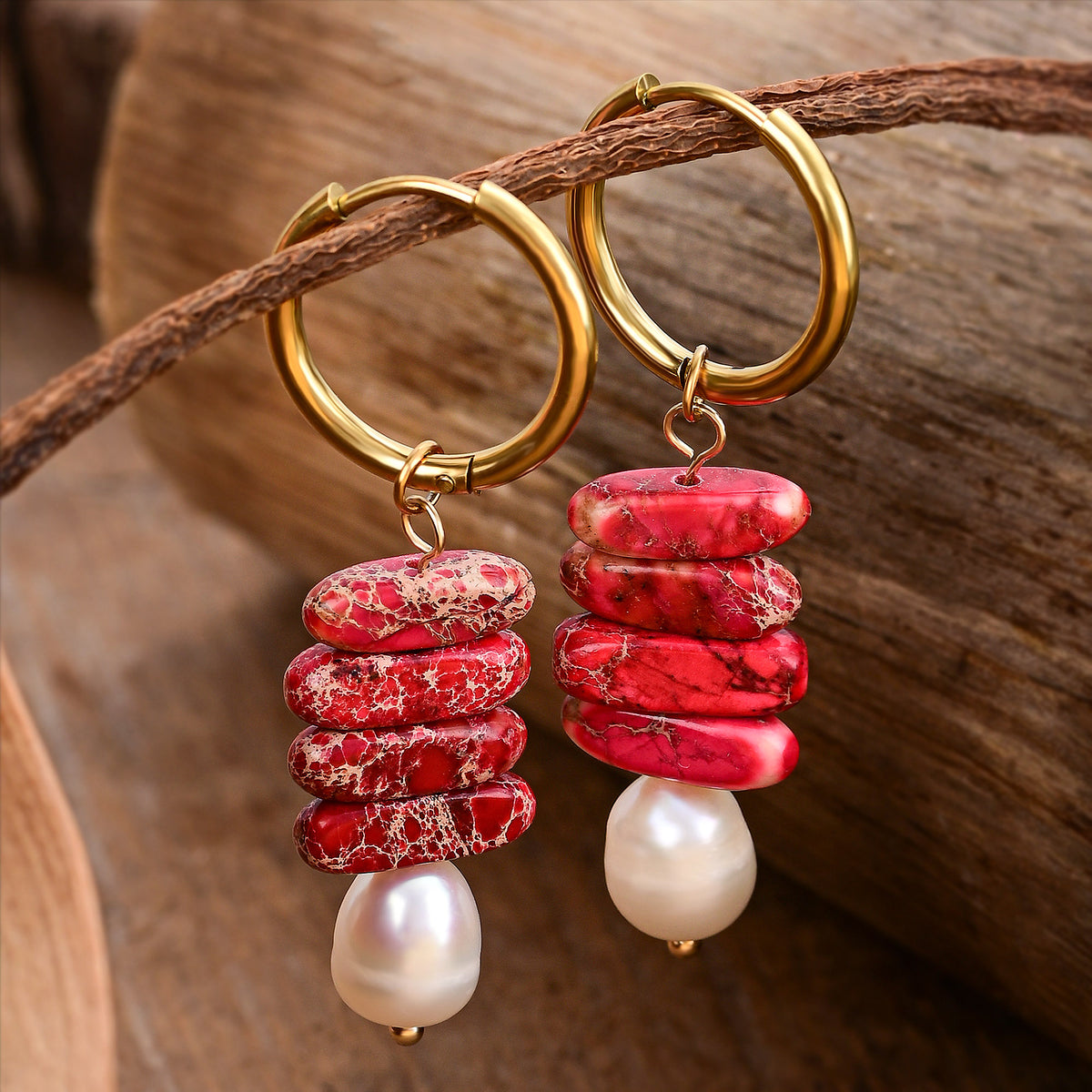 Abraza la belleza atemporal de la naturaleza con nuestros pendientes de piedra natural hechos a mano, diseñados para combinar la elegancia orgánica con un estilo contemporáneo, perfectos para cualquier ocasión.