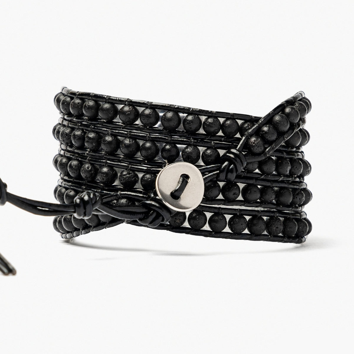 Men's Lava Stone Wrap Bracelet - Cape DiabloPulsera Envueltada de Piedra de Lava para Hombre