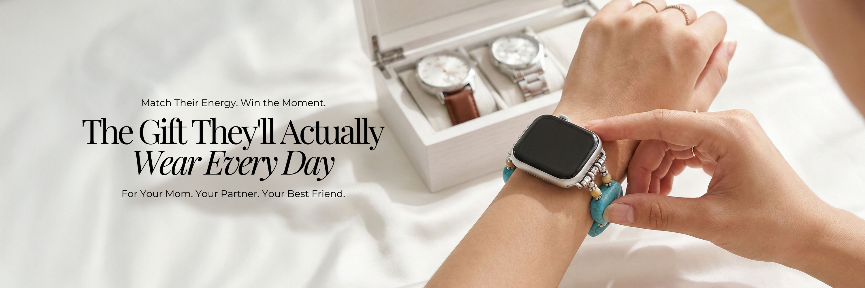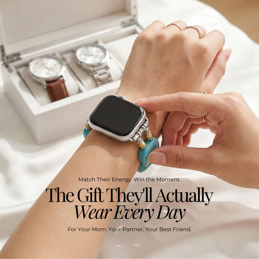Cada correa está elaborada con piedras naturales auténticas y detalles en capas — para que se sienta intencionado desde el momento en que se abre. No es al azar. No es apresurado. Está pensado.