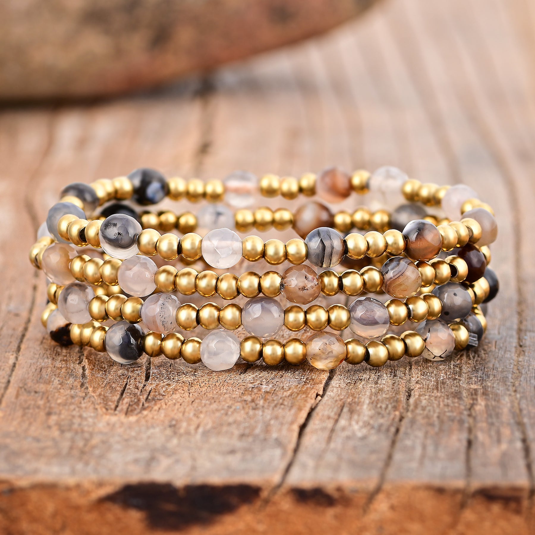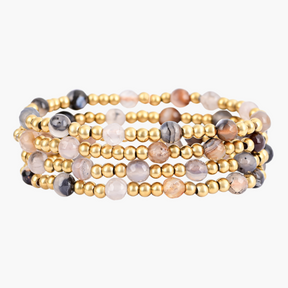Mejora tu estilo con el Set de Pulseras Elegancia Ágata, una mezcla refinada de belleza natural y acentos lujosos. Este set presenta impresionantes piedras de Ágata, conocidas por sus patrones únicos y energía equilibrante, combinadas con cuentas de latón delicadamente elaboradas para un toque de encanto terrenal.