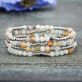 Sumérgete en la elegante serenidad del Conjunto de Pulseras Brillo de Amazonita, un equilibrio perfecto entre estilo y tranquilidad. Con exquisitas piedras de Amazonita, celebradas por sus tonos oceánicos calmantes y su conexión con la armonía y la verdad, este conjunto de brazalete aporta una sensación de tranquilidad a tu look.