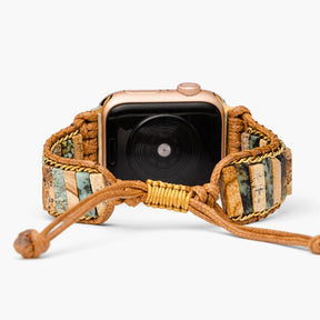 Correa Indigenous Coast para Apple Watch – Basada en la rica sabiduría de la tierra, esta correa presenta Jasper Imagen para claridad y conexión, ayudándote a realinearte con tu verdadero camino y calma interior. Combinada con Turquesa Africana, la piedra de la transformación, es la compañera perfecta para nuevos comienzos, movimientos audaces y nuevos inicios.