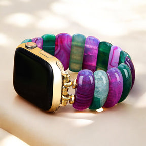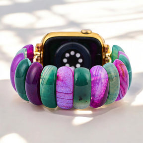 Desata tu encanto libre y bohemio con la correa elástica Bohemian Jewel Agate para Apple Watch, una vibrante fusión de piedras moradas, rosas y verdes que encarnan la creatividad, la individualidad y el deseo de viajar. Inspirada en la belleza ecléctica del estilo bohemio, esta correa está diseñada para quienes abrazan la vida con un sentido de aventura y autoexpresión.
