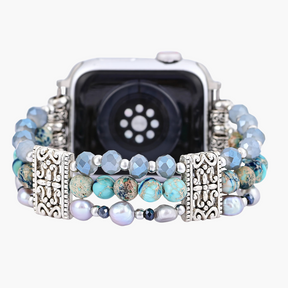 La correa Artisanal Jasper Nomadic Stretch para Apple Watch combina jaspe terroso, cristal brillante y perla elegante para un aspecto equilibrado pero radiante. Cada cuenta es cuidadosamente seleccionada por su belleza natural y significado.