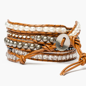 - Material: Hematite, Perla, Cuero genuino, Aleación