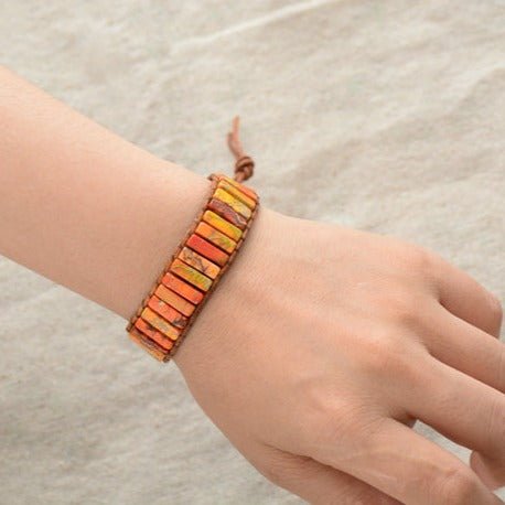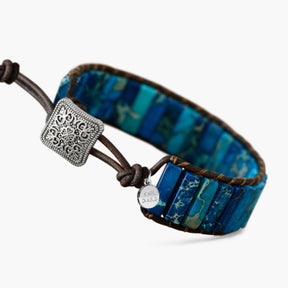 - Material: Piedras Naturales Jaspe y Ágata, Cuero, Acero Inoxidable