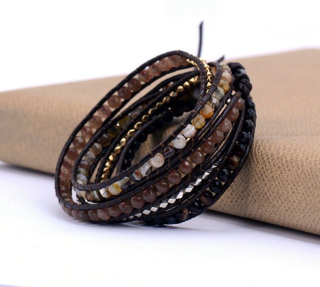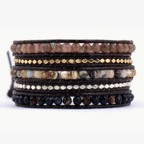 - Materiales: Piedras Naturales Mixtas, Cuero, Acero Inoxidable