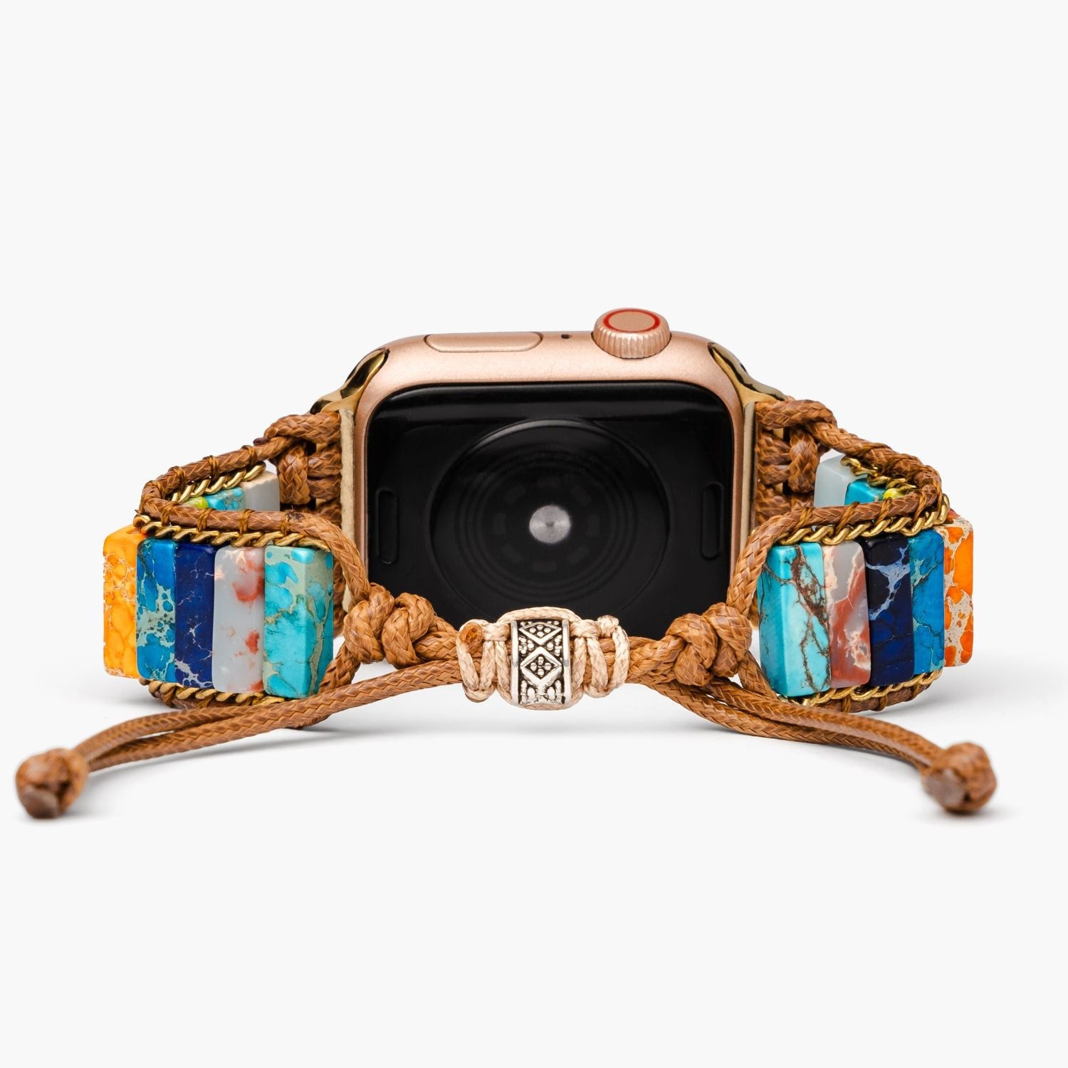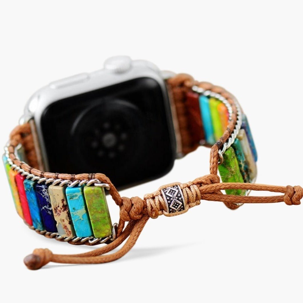 Esta hermosa correa de protección del chakra de sanación para Apple Watch está hecha a mano con 7 cuentas de piedra natural de alta calidad diferentes. Cada uno de los 7 chakras está representado por una piedra única. Esta impresionante pieza es el regalo perfecto para fashionistas y espíritus libres.
