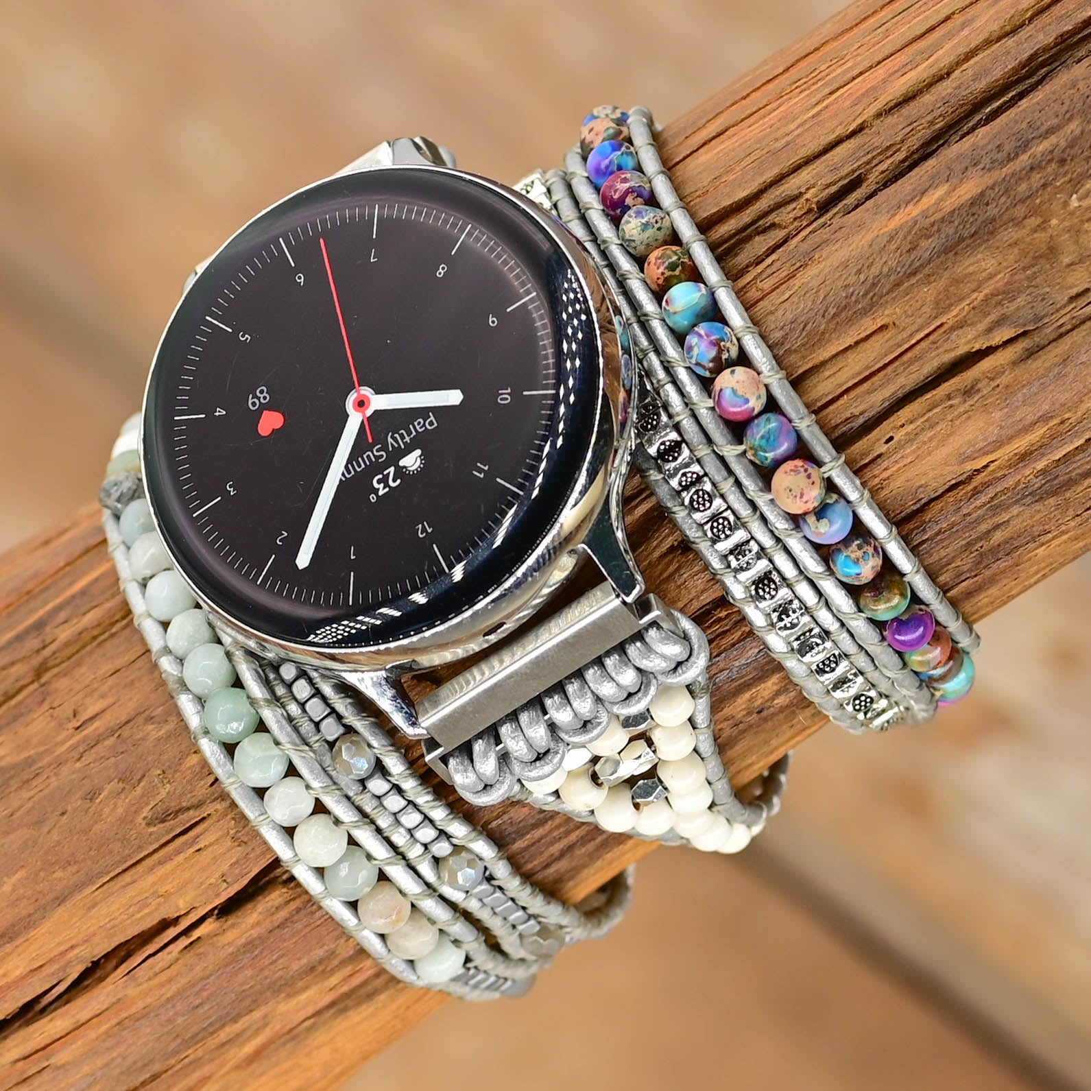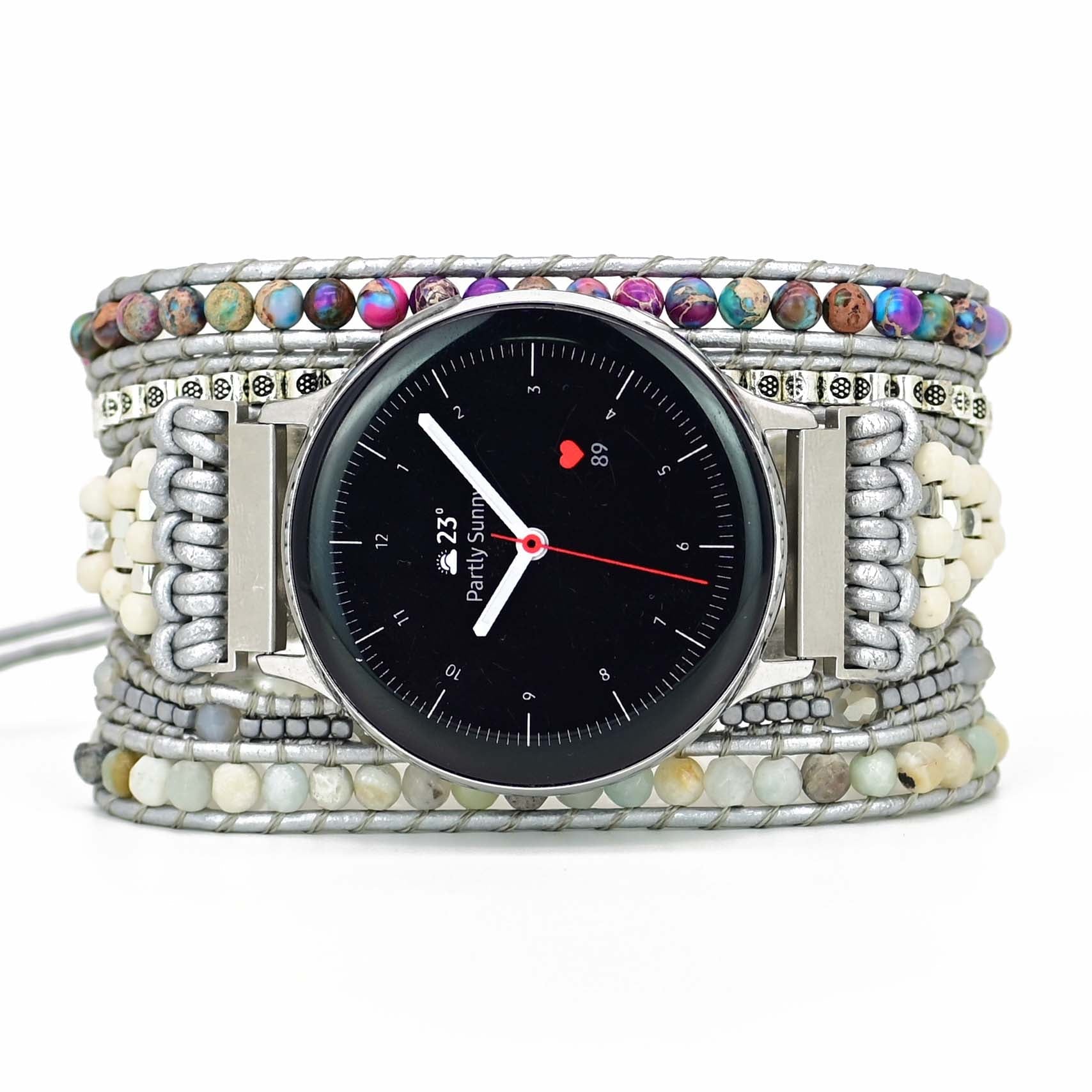 Aprovecha el poder curativo de la correa Healing Turquoise para Samsung Galaxy Watch, que cuenta con piedras turquesas relajantes que promueven el equilibrio y la calma. Elegante y serena, es el accesorio perfecto para mantener la energía positiva cerca todo el día.