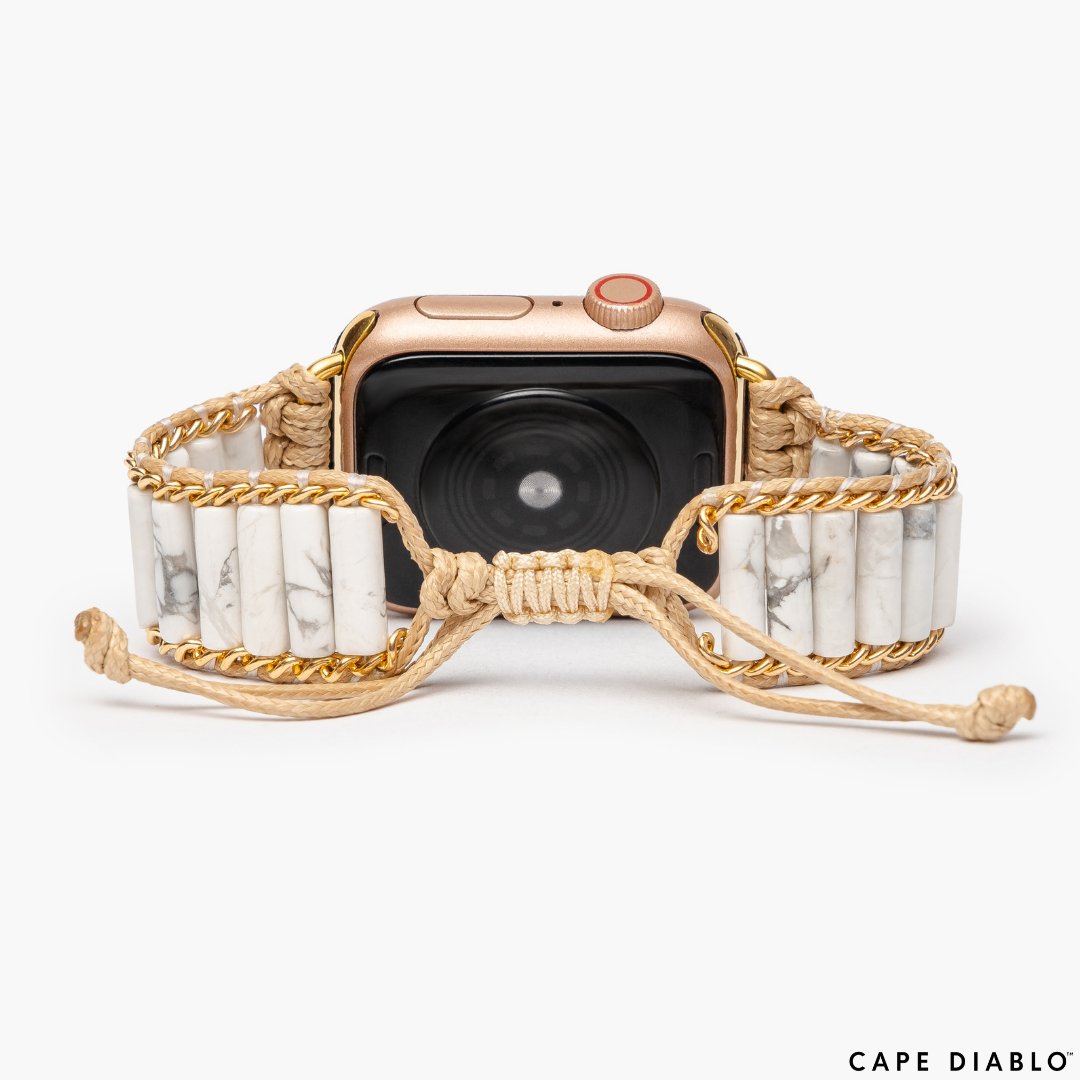 Relájate con estilo con la correa Heavenly Howlite para Apple Watch, tu accesorio ideal para la calma y la serenidad. Conocida como la "Piedra Calmante", la Howlite disuelve el estrés, aportando una vibra pacífica a tu día.