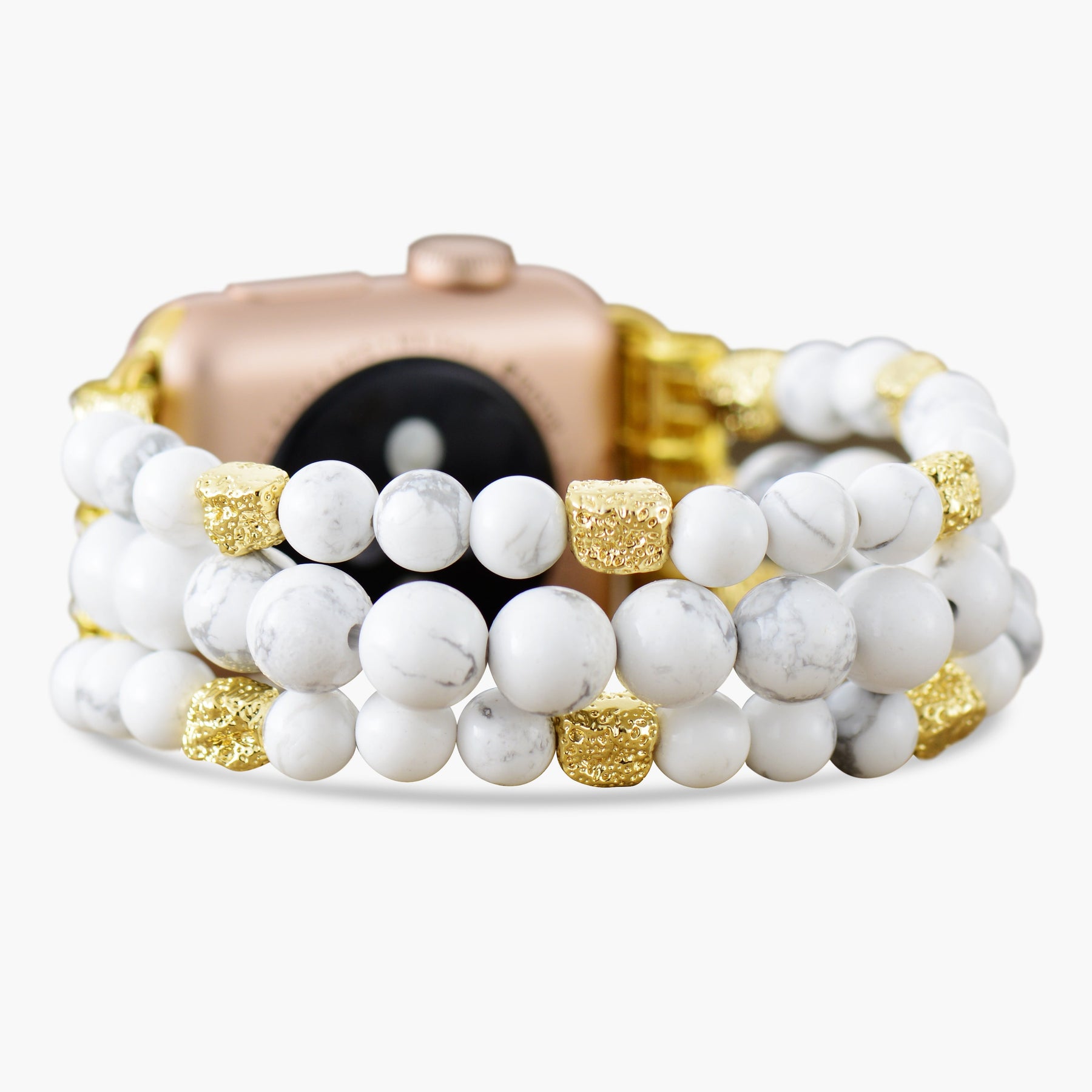 La correa Howlite Spirit Stretch para Apple Watch presenta las propiedades calmantes de la Howlita, conocida por su capacidad para reducir el estrés y la ansiedad. Esta piedra relajante ayuda a promover la tranquilidad, siendo un compañero perfecto para quienes buscan equilibrio emocional y paz interior.