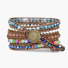 - Materiales: Esmalte de color, Cristal, Ágata, Hematita, Cuero, Aleación de Zinc y Cierre de Acero Inoxidable