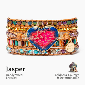 La Pulsera Envoltura de Protección Amor Intenso presenta impresionante Jaspe hecho a mano, aprovechando su poderosa energía para sanar y llenarte de amor incondicional. Enraíza tu fuerza y estabilidad mientras canalizas la sabiduría antigua y el coraje de esta piedra nutritiva.