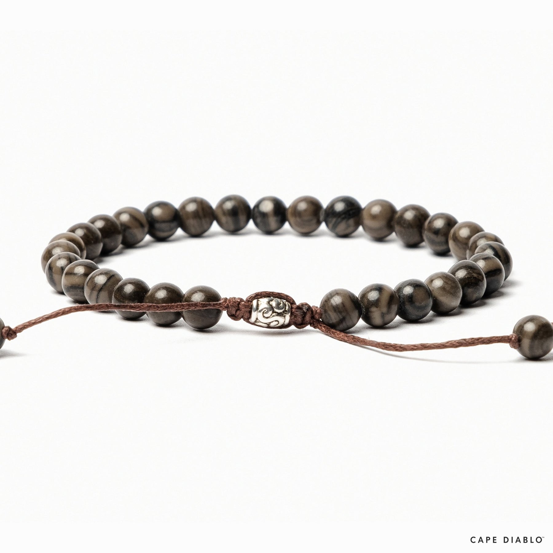 La Pulsera de Jaspe Negro para Hombre presenta jaspe, una piedra conocida por sus propiedades protectoras y curativas. Promueve la relajación, reduce los miedos e incertidumbres, y ayuda al portador a alcanzar una sensación de tranquilidad y equilibrio.