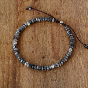 La pulsera tibetana de jaspe gris para hombre es un accesorio que aporta arraigo y protección. Conocido por sus propiedades calmantes y curativas, el jaspe ayuda a reducir el miedo y la incertidumbre, promoviendo la relajación, la organización y la paz interior.