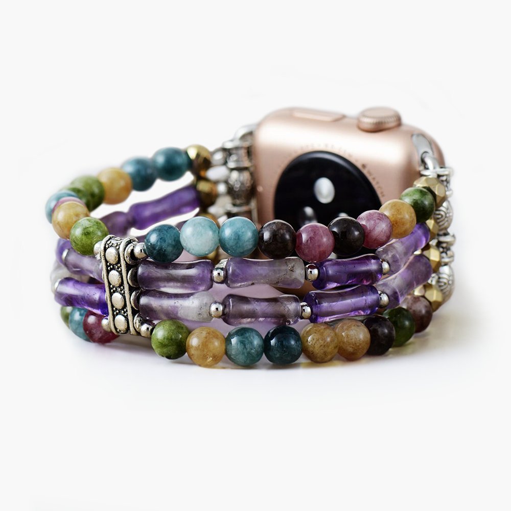 Convierte el caos en calma con la correa Mosaic Amethyst Stretch para Apple Watch, una impresionante fusión de estilo y serenidad. Conocida por sus vibraciones relajantes y sus poderes para mejorar la claridad, la amatista te ayuda a mantenerte centrado, sin importar lo que la vida te depare.