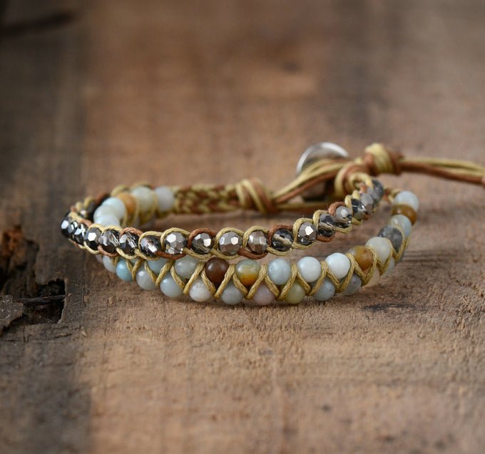 - Materiales: Amazonita, Piedras Naturales, Cordón, Acero Inoxidable