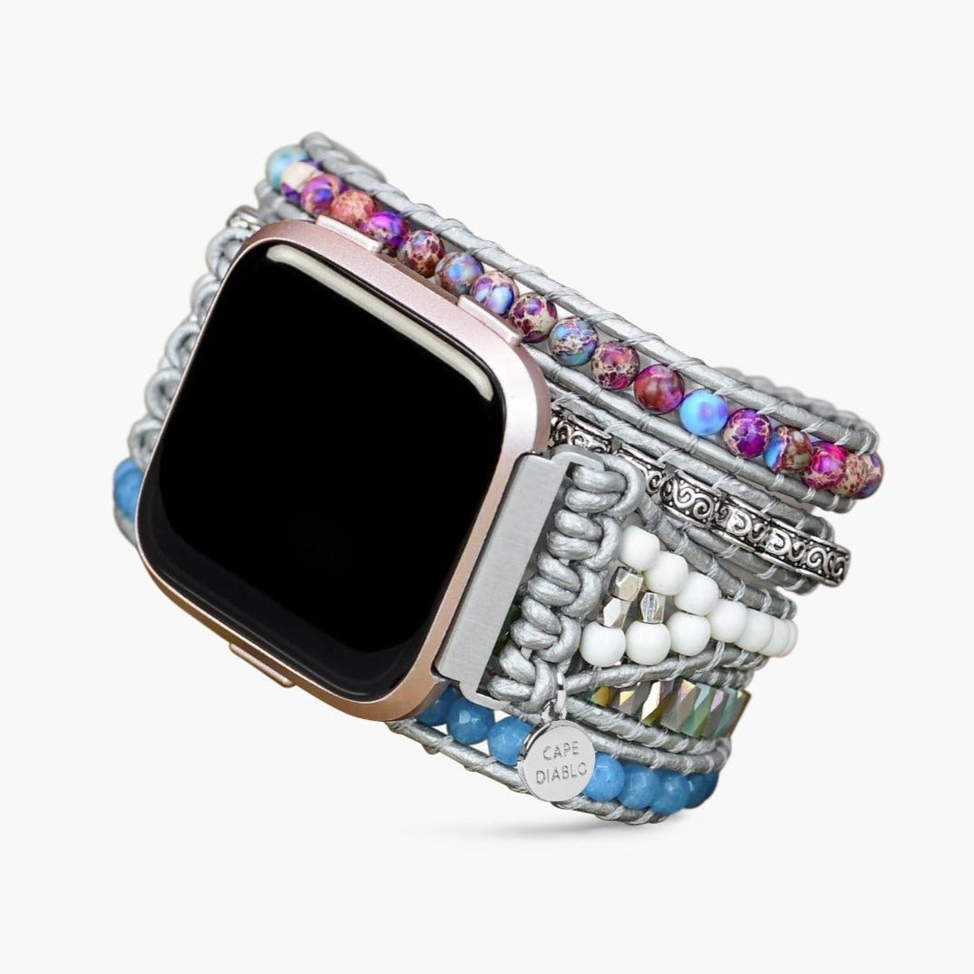 Abraza la fuerza del mar con la correa para reloj Fitbit Versa 2 Ocean Jasper Protection, que cuenta con piedras calmantes que promueven la resiliencia, el equilibrio y la sanación emocional. Un diseño calmante pero poderoso que te conecta con la energía nutritiva del océano.
