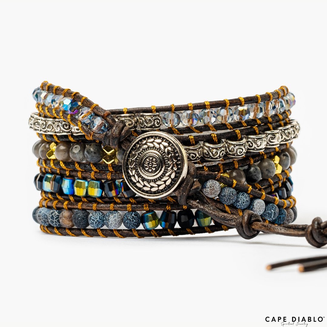 Desata tu fuerza interior con la Pulsera Envoltura de Protección Onyx Moonlight, que presenta una poderosa mezcla de ónix y cuarzo para protección, equilibrio y calma. Esta piedra guerrera ayuda a desterrar el miedo, revelando las verdaderas profundidades de tu alma y empoderándote para enfrentar cualquier desafío.