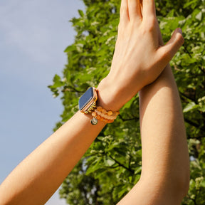 Presentamos nuestra correa Sunstone Radiant para Apple Watch, un faro de calidez y elegancia para tu muñeca. Elaborada con cuentas genuinas de piedra de sol, cada correa está impregnada con los tonos ardientes del sol, irradiando calidez y vitalidad.