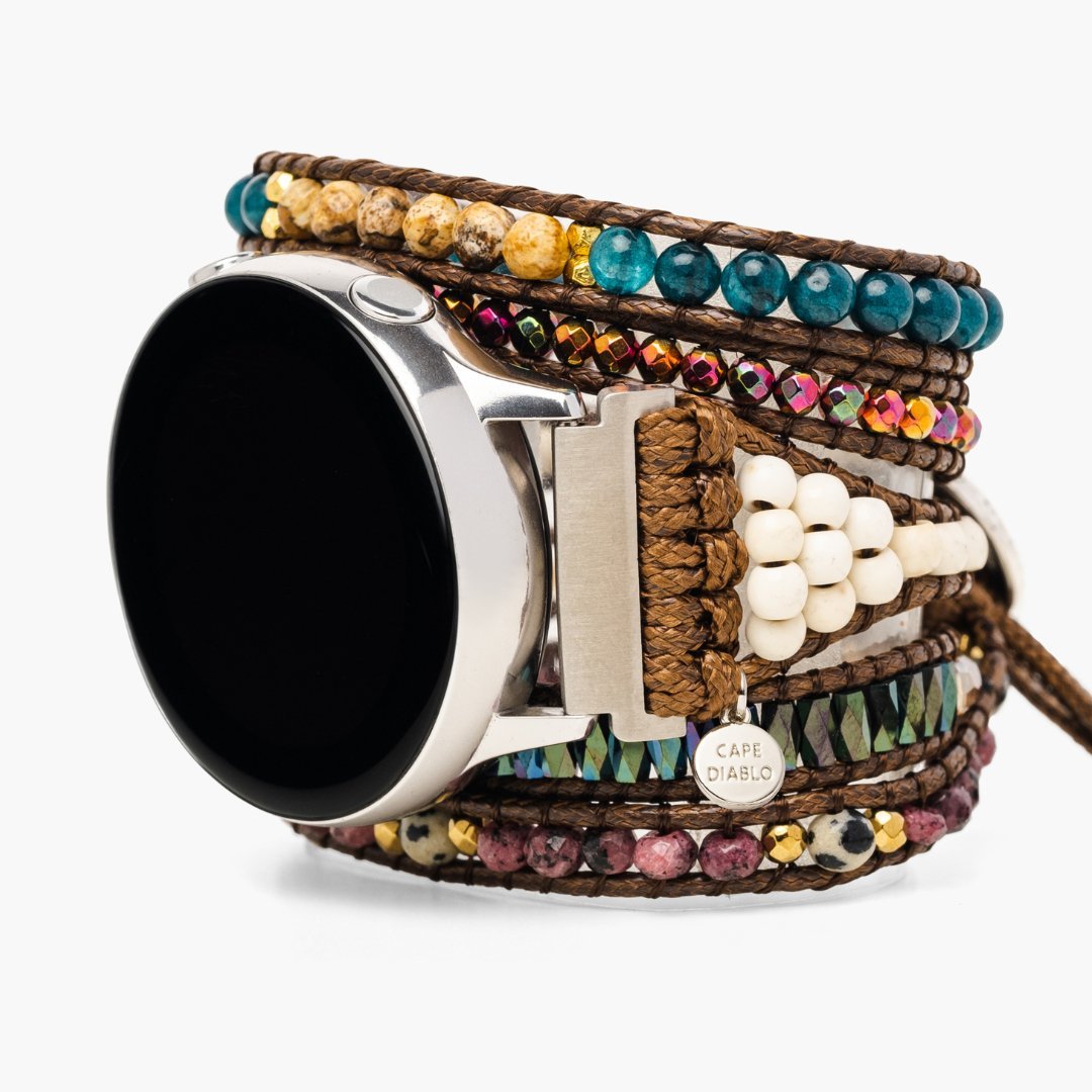 Fluye con la belleza de la naturaleza cada vez que mires tu muñeca con la correa Nature's Stream para Samsung Galaxy Watch. Con piedras en tonos tierra calmantes y un diseño relajante, es la combinación perfecta de tranquilidad y estilo para tus aventuras diarias.
