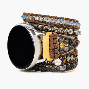 Abraza la elegancia audaz con la correa Onyx Moonlight para Samsung Galaxy Watch, donde las profundas piedras de ónix se encuentran con un toque de brillo lunar para un aspecto que es a la vez poderoso y encantador. Fuerte, elegante y atemporal: está hecha para moverse con tu espíritu.