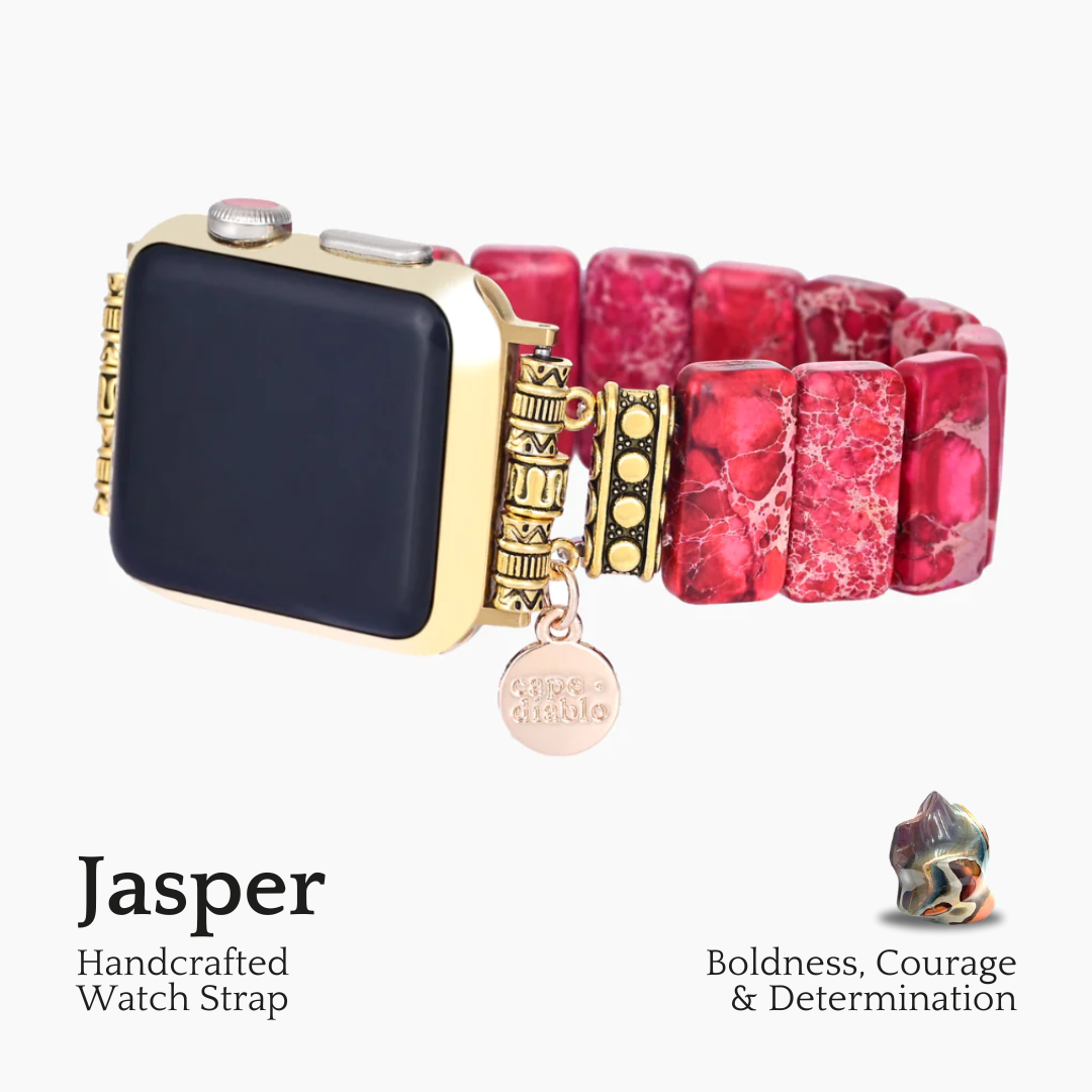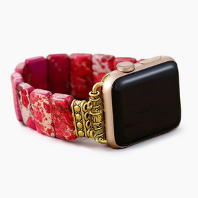 La correa elástica de jaspe tibetano escarlata para Apple Watch presenta la energía calmante del jaspe, proporcionando protección y reduciendo los miedos. Te ayuda a relajarte, mantenerte organizado y alcanzar la tranquilidad interior.