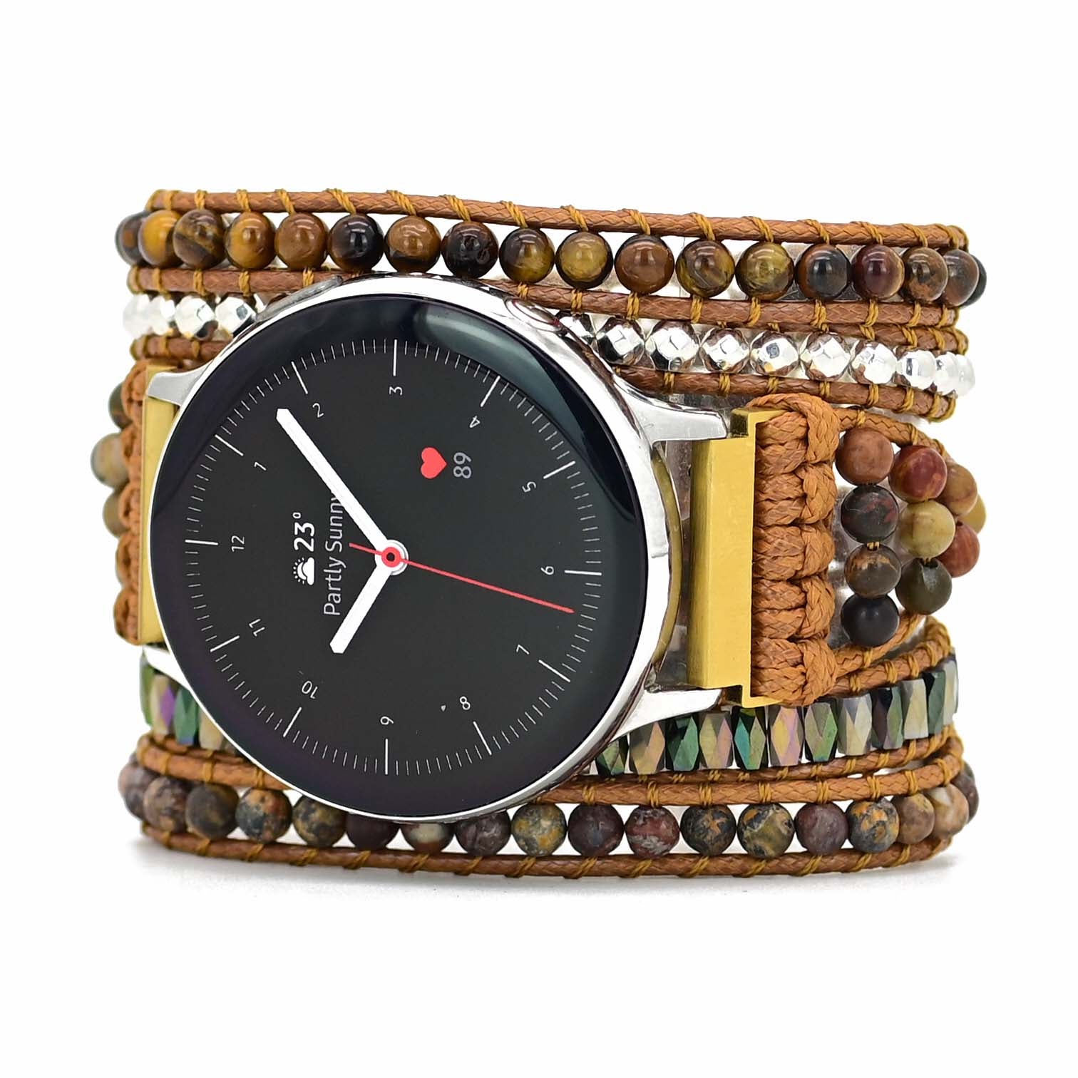 Capta la atención con la correa Tiger's Eye Royal para Samsung Galaxy Watch, donde las ricas piedras marrón dorado irradian poder y confianza. Eleva tu estilo en la muñeca con una elegancia audaz y terrenal que es tan imparable como tú.