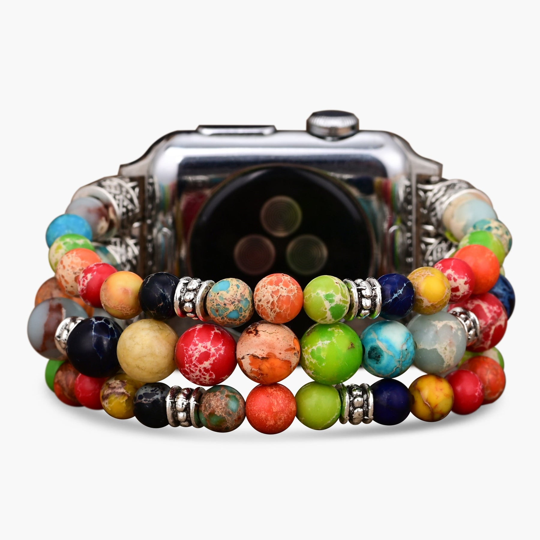 Infunde tu estilo con energía vibrante y significado con la correa Vibrant Chakra Stretch para Apple Watch, una audaz mezcla de piedras coloridas que canalizan equilibrio y espíritu. Elástica, elegante y llena de vida, es la compañera perfecta para tu smartwatch y tu viaje.