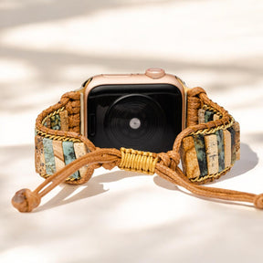 Correa Indigenous Coast para Apple Watch – Basada en la rica sabiduría de la tierra, esta correa presenta Jasper Imagen para claridad y conexión, ayudándote a realinearte con tu verdadero camino y calma interior. Combinada con Turquesa Africana, la piedra de la transformación, es la compañera perfecta para nuevos comienzos, movimientos audaces y nuevos inicios.