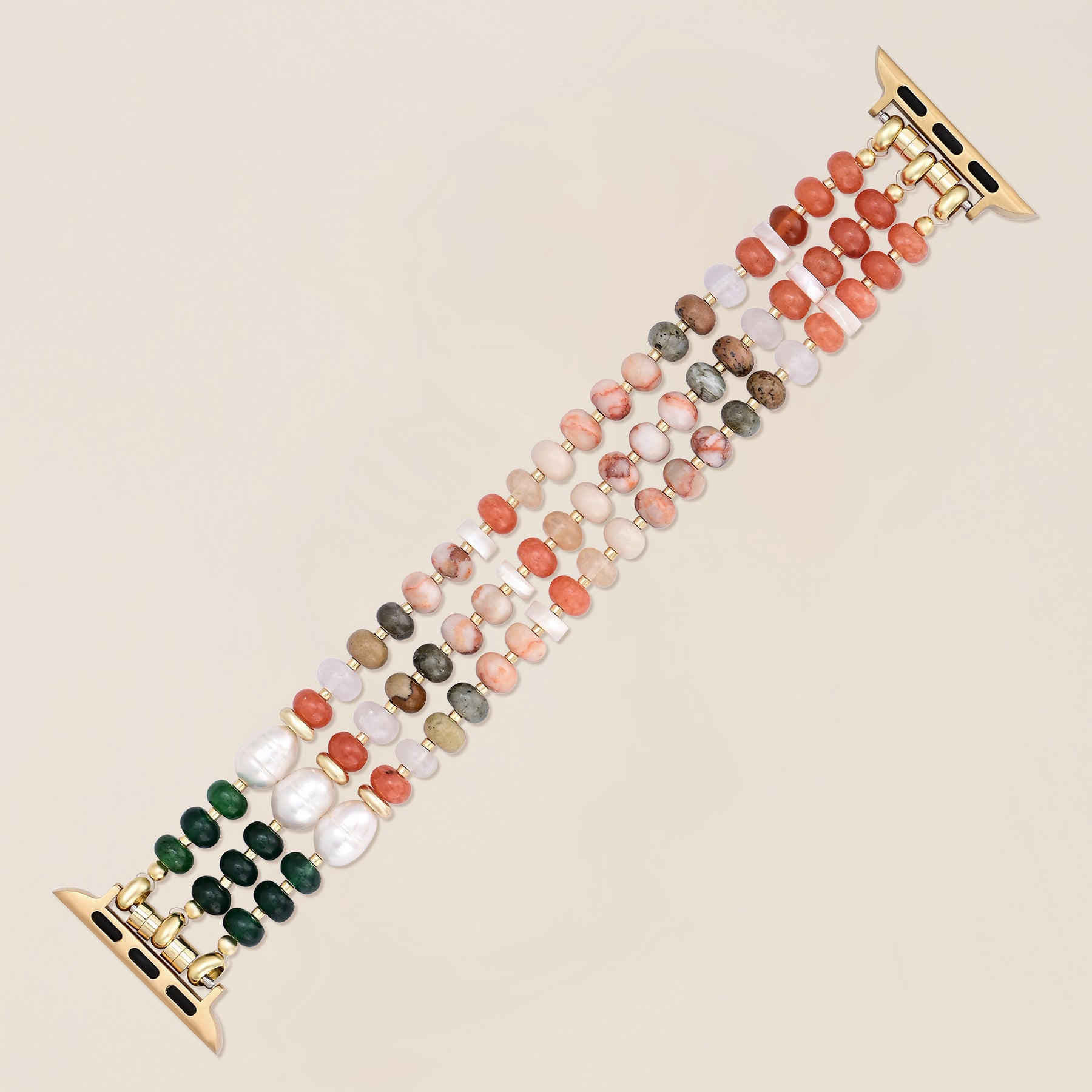 Ilumina tu look con la correa elástica de piedra natural coral para Apple Watch, una vibrante mezcla de coral y piedras naturales complementarias que capturan la calidez del verano. Este accesorio colorido y terroso añade un toque juguetón pero equilibrado a cualquier atuendo.
