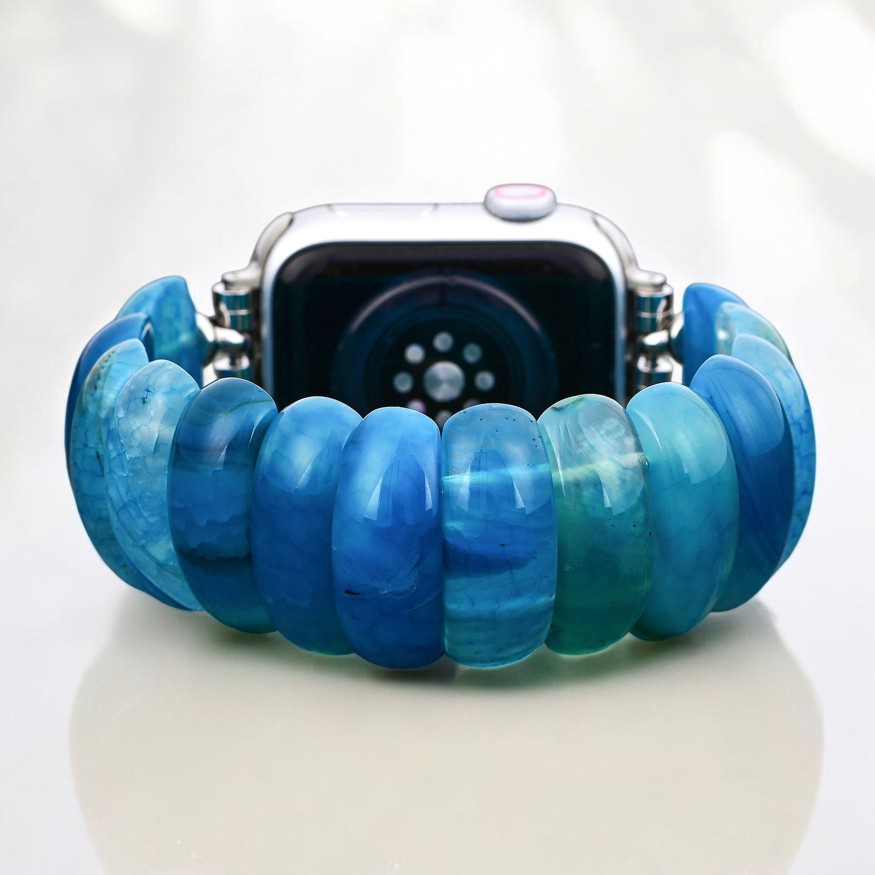 Eleva tu Apple Watch con la correa elástica Ocean Essence Agate, una pieza audaz pero cómoda elaborada con piedras naturales, cada una elegida por sus tonos hipnotizantes y patrones únicos. El ágata es conocido por su energía calmante y se cree que promueve el equilibrio emocional, la claridad, la fuerza y la protección.