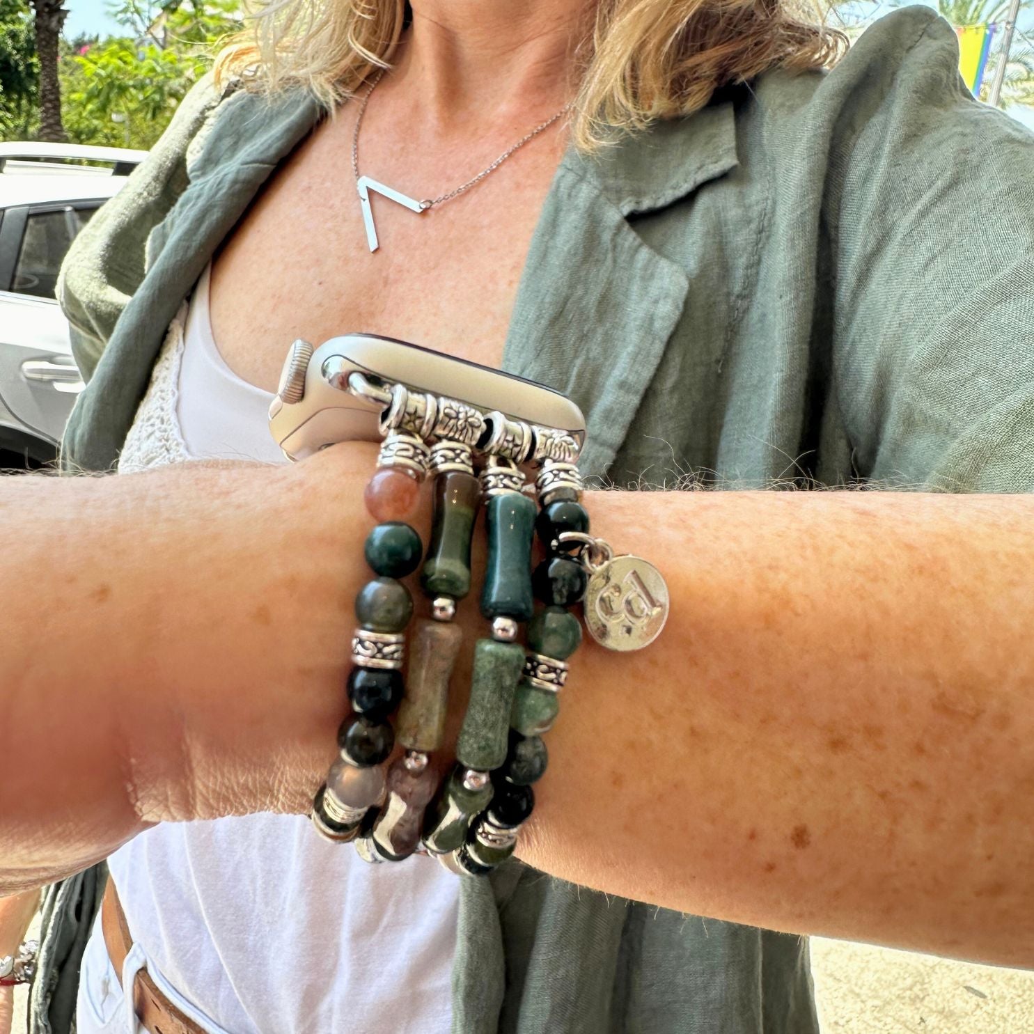 Añade un toque de encanto atemporal a tu Apple Watch con la Correa Elástica Vintage de Ágata, que presenta piedras naturales de ágata con tonos ricos que irradian elegancia terrenal. Diseñada para la comodidad y el estilo, su diseño elástico garantiza un ajuste sin esfuerzo para el uso diario.