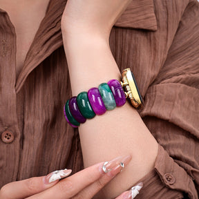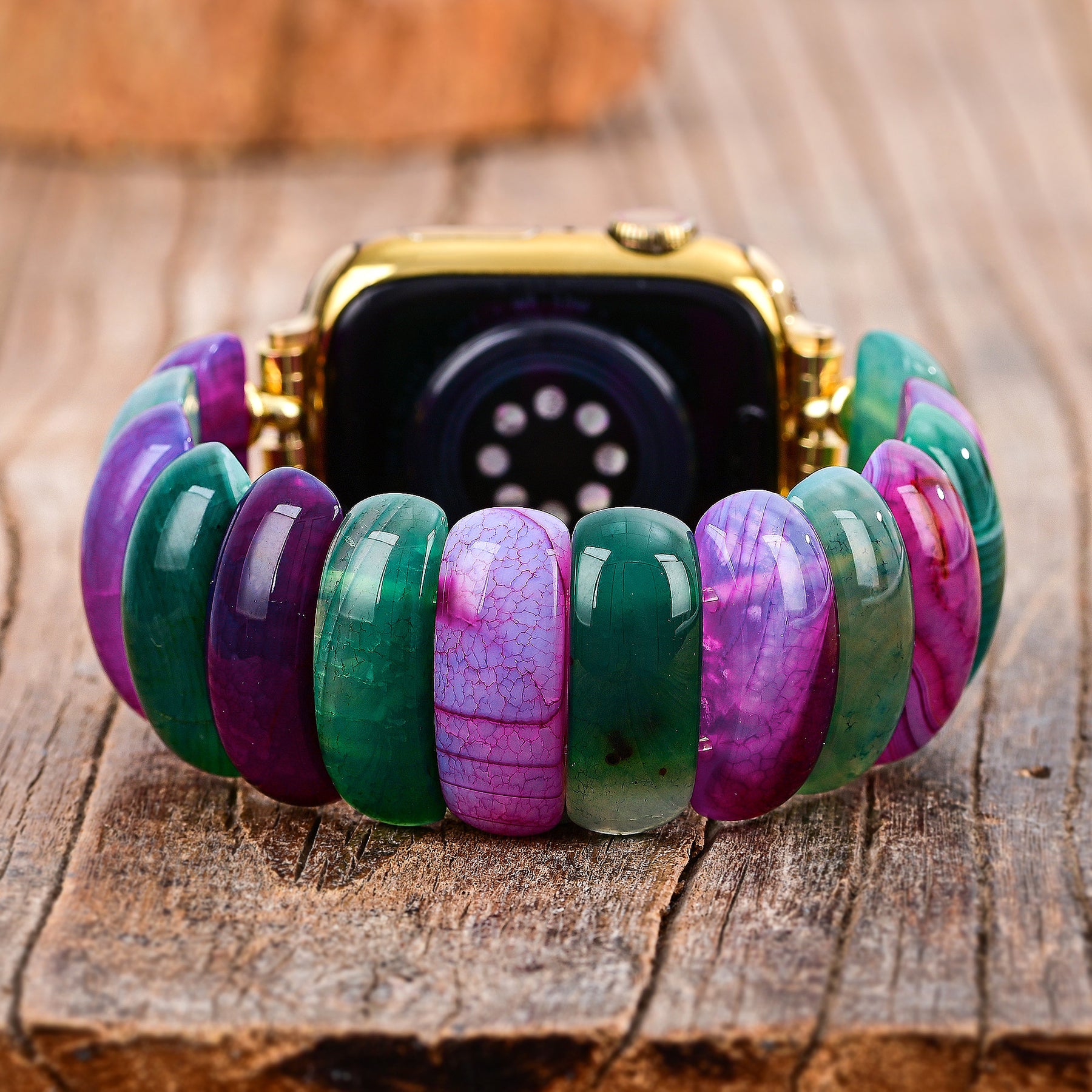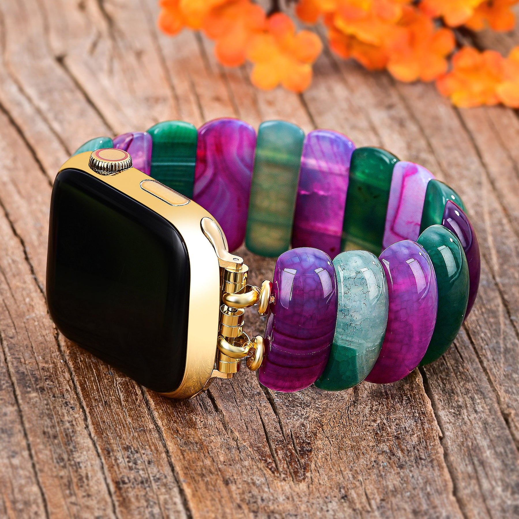 Unleash your free-spirited charm with the Bohemian Jewel Agate Stretch Apple Watch Strap, a vibrant fusion of purple, pink, and green stones that embody creativity, individuality, and wanderlust. Inspired by the eclectic beauty of bohemian style, this strap is designed for those who embrace life with a sense of adventure and self-expression.