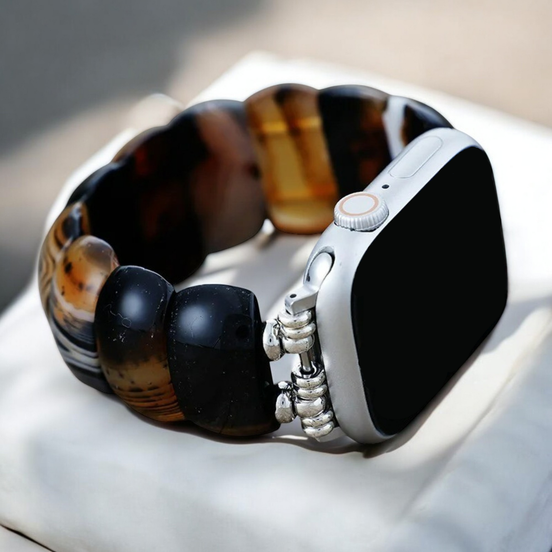Elevate your Apple Watch with the timeless sophistication of the Bohemian Onyx Elegance Stretch Apple Watch Strap. Crafted with striking black onyx stones, this strap exudes an aura of effortless grace and charm.