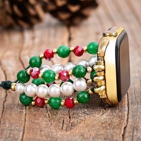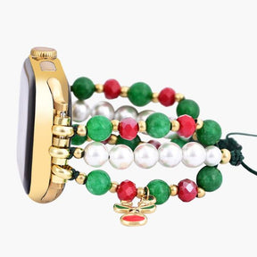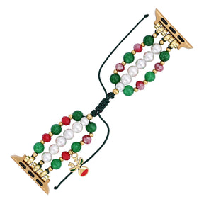 Embrace the holiday cheer with the Christmas Reindeer Radiance Apple Watch Strap, featuring a festive mix of green, red, and white beads. A playful reindeer charm adds a whimsical touch, perfectly capturing the magic of the season.