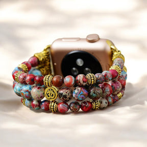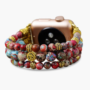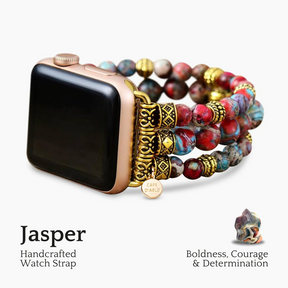 Embrace strength and tranquility with the Crimson Jasper Stretch Apple Watch Strap. Known for its protective energy, this vibrant stone helps release fear, boosts relaxation, and brings a sense of balance, grounding you through life's ups and downs.