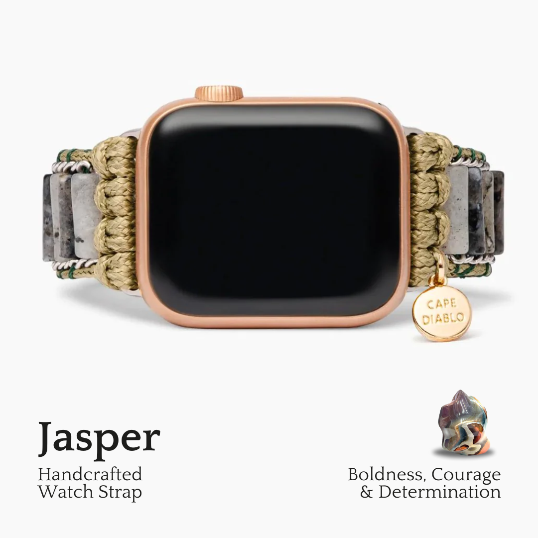 Let calmness settle in with the grounding energy of the Dusk Jasper Apple Watch Strap. Beloved for its soothing and protective properties, Jasper encourages relaxation, dissolves fear, and brings clarity and inner harmony when you need it most.
