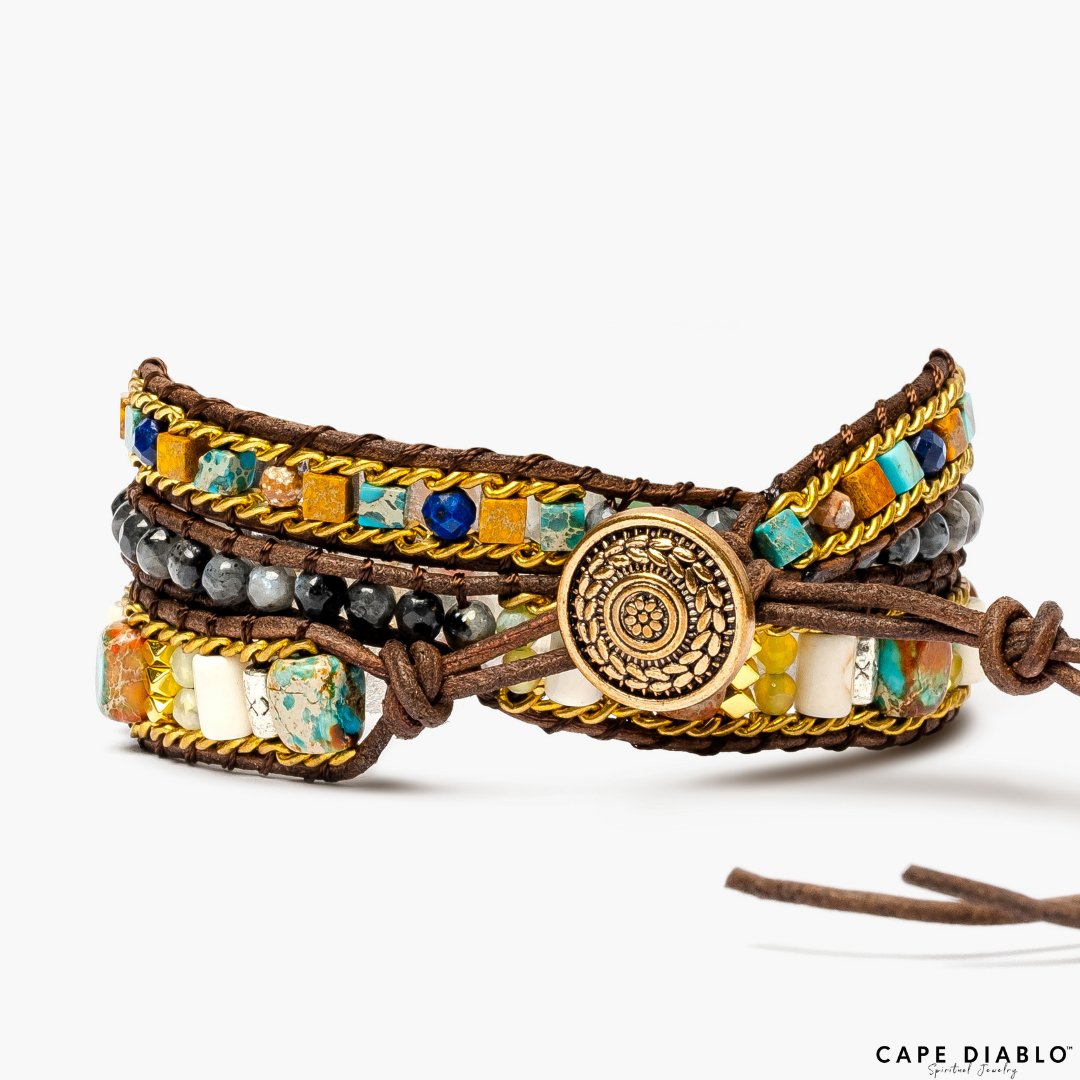 Channel the strength of the earth with the Earth Emperor Jasper Wrap Bracelet—a powerful blend of Emperor Jasper, Hematite, Agate, Labradorite, and Lazurite. This majestic piece grounds, protects, and uplifts your spirit, aligning your energy with clarity, stability, and cosmic wisdom.