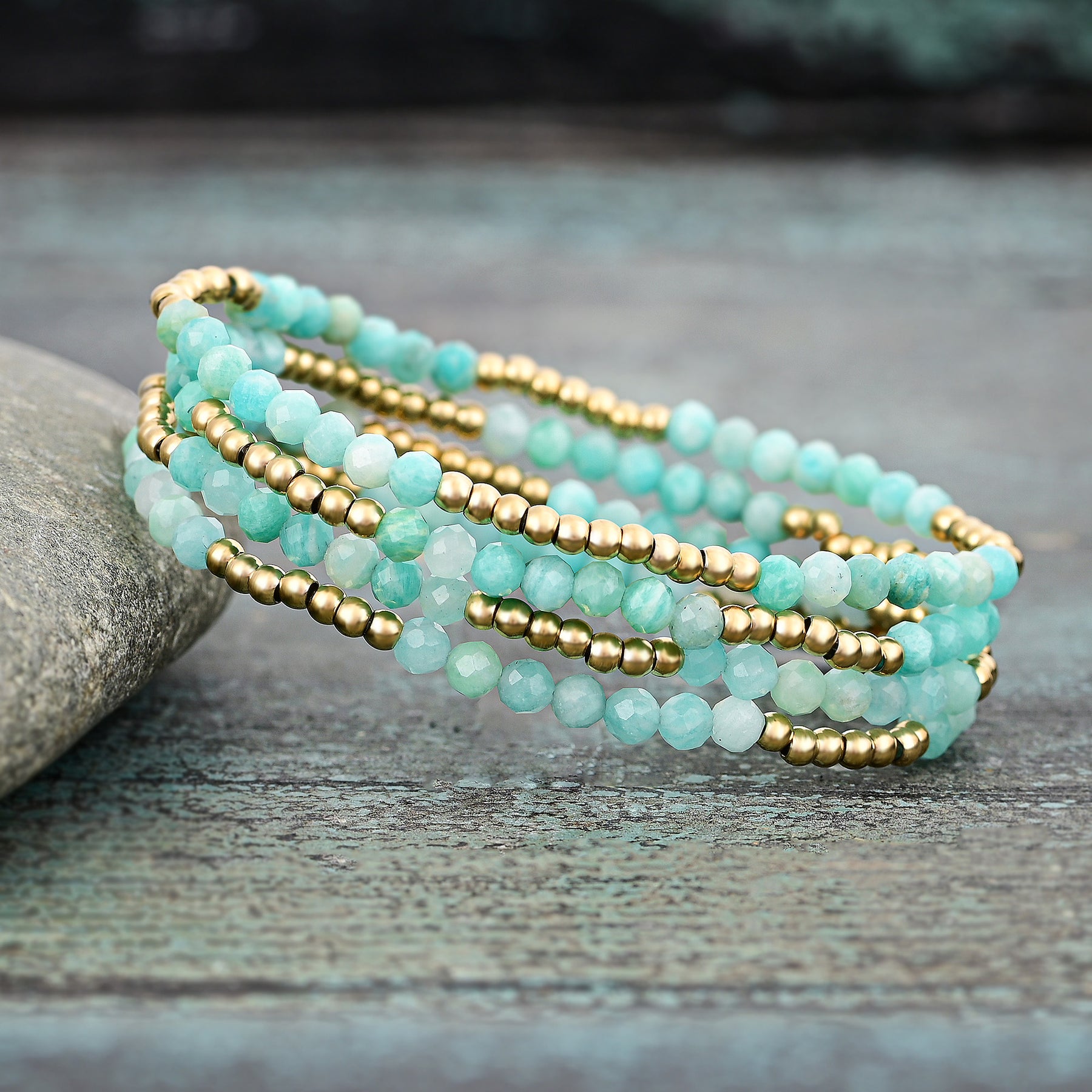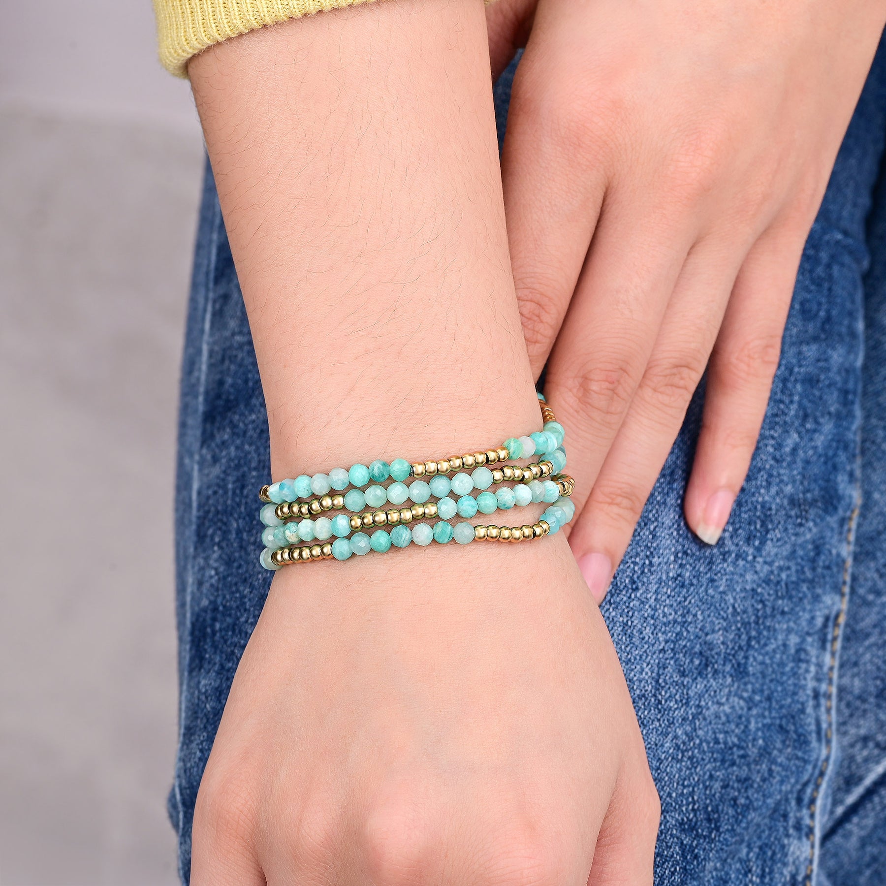 - Materials: Amazonite, Brass Beads, Stainless Steel with 14K Gold plating