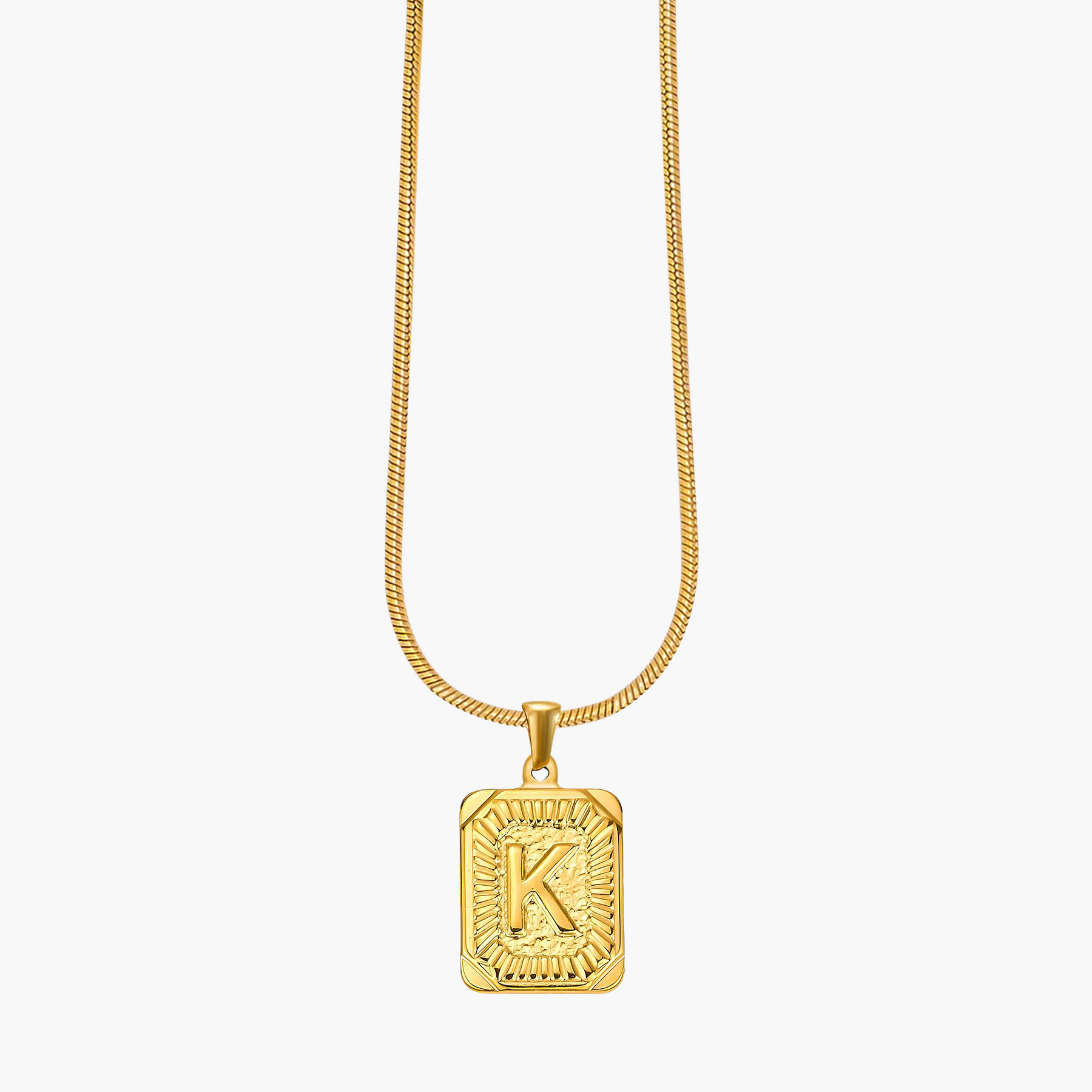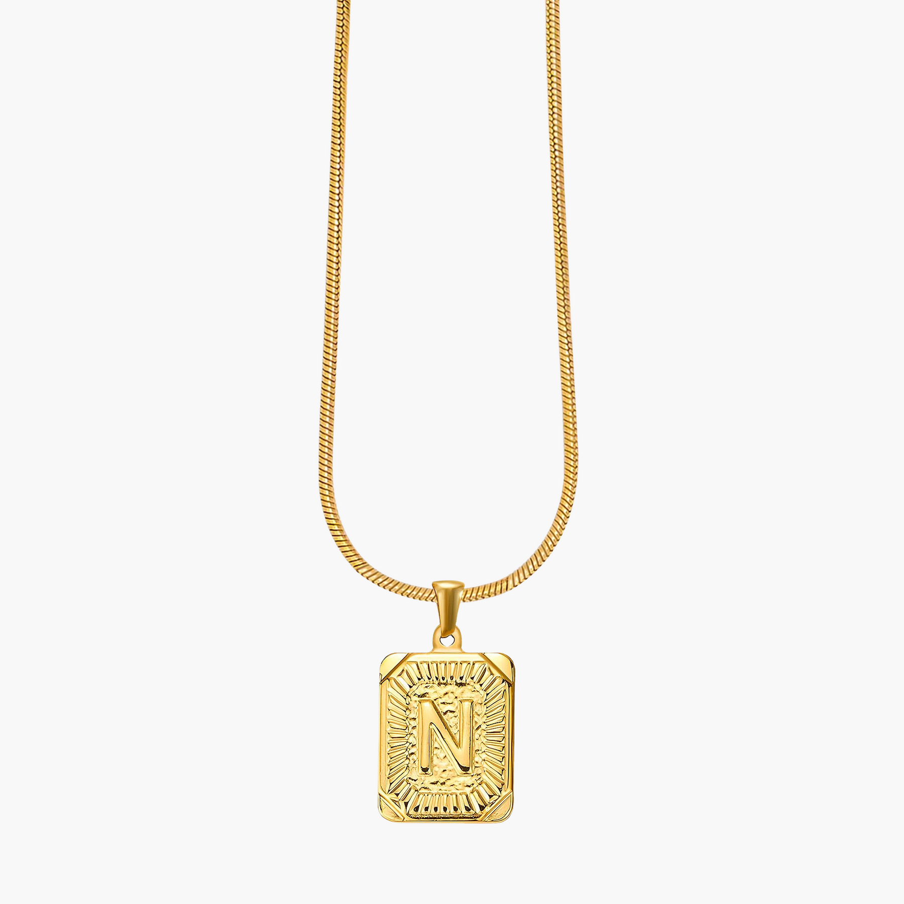 Illuminate your look with the Golden Glow Initial Charm Necklace, a timeless piece designed to add a personal touch to your style. Crafted from radiant gold-tone metal, this elegant pendant features a bold initial framed by intricate sunburst detailing, symbolizing warmth, strength, and individuality.