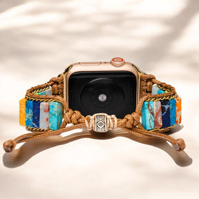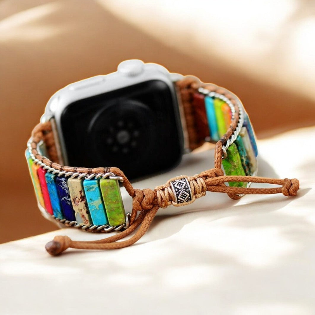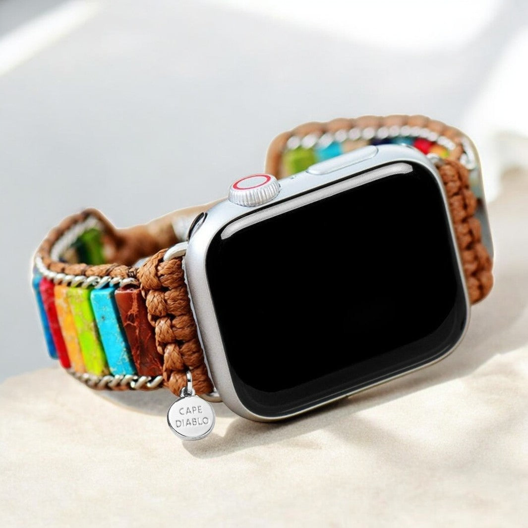 This gorgeous Healing Chakra Protection Apple Watch Strap is handcrafted with 7 different high-quality natural stone beads. Each one of the 7 chakras is represented by one unique stone. This stunning piece is the perfect gift for fashionistas and the free-spirited.